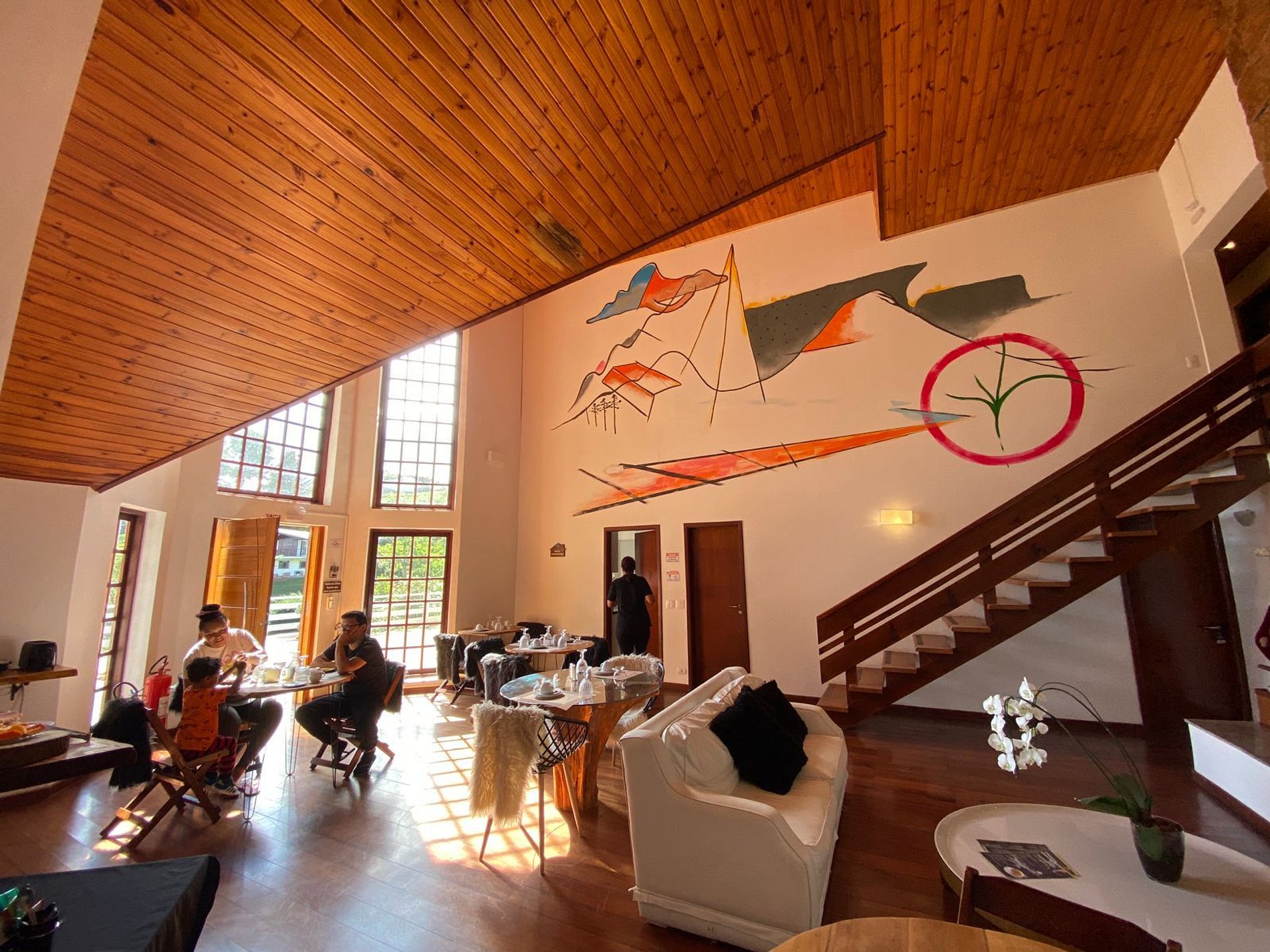 Pousada localizada no Alto do Capivari com as melhores vistas da região, com oito acomodações aconchegantes para casais ou famílias. A área externa tem um belo jardim e deck, com fogão de chão, com vista para as montanha onde se pode assistir os mais belos nascer e por do sol. Nosso jardim é compartilhado e tem um playground com brinquedos para crianças como pula-pula e golzinho de futebol. Temos área gourmet (sob reserva) com churrasqueira com utensílios para churrasco, como tábua, grelha e pegadores, fogão e forno a lenha.