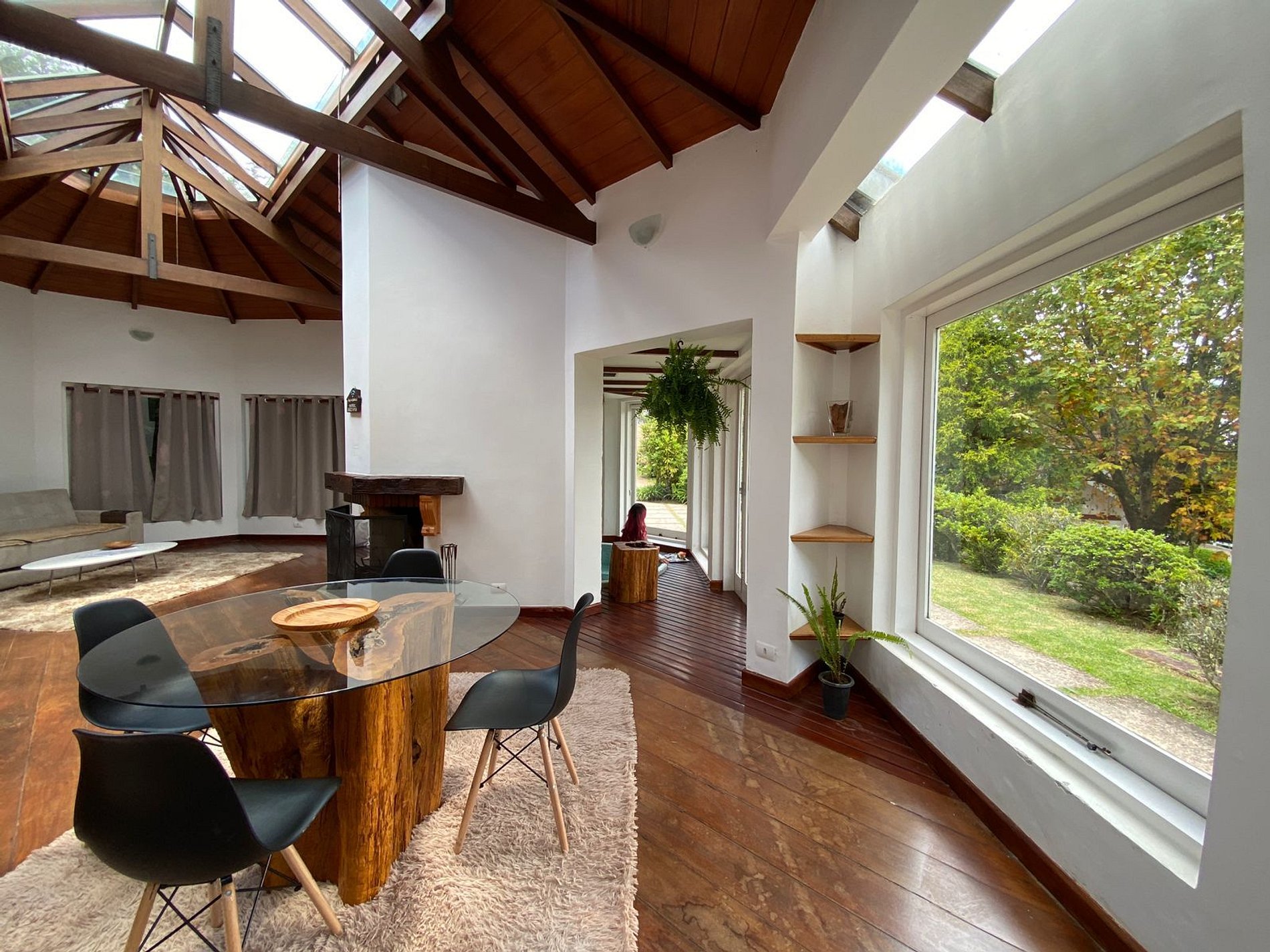 A casa de vidro é mágica com uma linda vista para as montanhas.