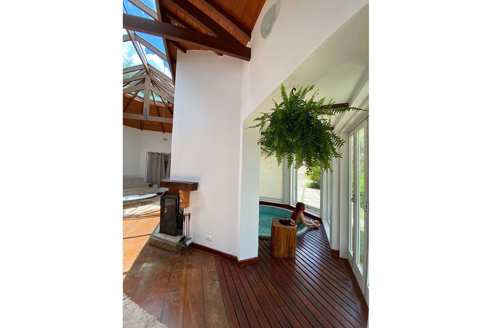 A casa de vidro é uma das acomodações que compõe o Complexo Capivari Lodge, no bairro Alto Capivari.