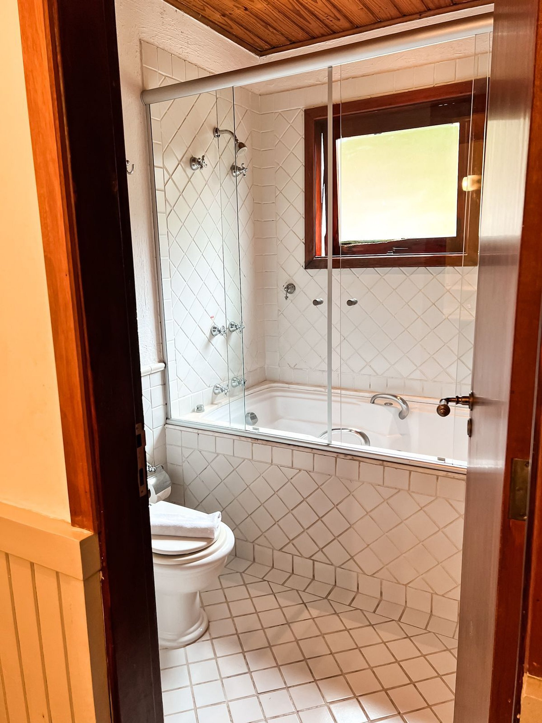 Não havia sabonete de banho no banheiro. Apesar de o quarto ser triplo, havia apenas duas toalhas de banho, mas solicitei outra e isso foi resolvido rapidamente, então não foi um problema, só um ponto que talvez possa ser melhorado para outras reservas. Tem um desnível um pouco alto na rampa de entrada/saída da casa, apesar do carro não ser baixo, acabou arrastando a parte de baixo todas as vezes que subimos a rampa, então seria legal nivelar ou fazer uma "mini rampa" pro carro não bater nesse "degrau". Poderia ter uma escadinha no banheiro para ajudar quem tem dificuldade de locomoção a entrar na banheira, pois como ela é alta, minha mãe teve um pouco de dificuldade de entrar. Mas como ficamos apenas uma noite, não consultei pra ver se o lodge oferecia isso, caso não tenha, seria legal disponibilizar para quem tiver a mesma restrição.