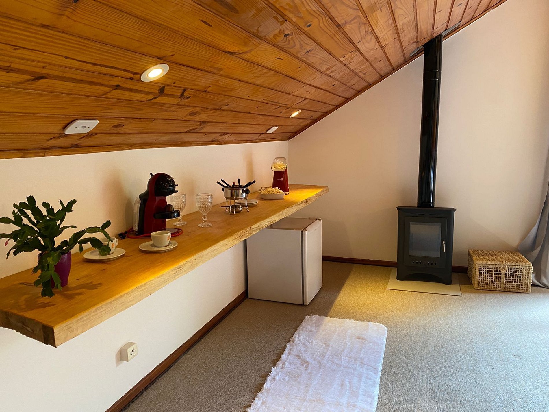 Loft Machado moderno e espaçoso ideal para acomodar casais. A acomodação possui uma cama de casal e uma cama de solteiro uma jacuzzi privativa com vista, lareira, pipoqueira, frigobar , 1 aparelho de foundue, internet Wi-Fi e smart TV, Uma cafeteira Dolce Gusto.