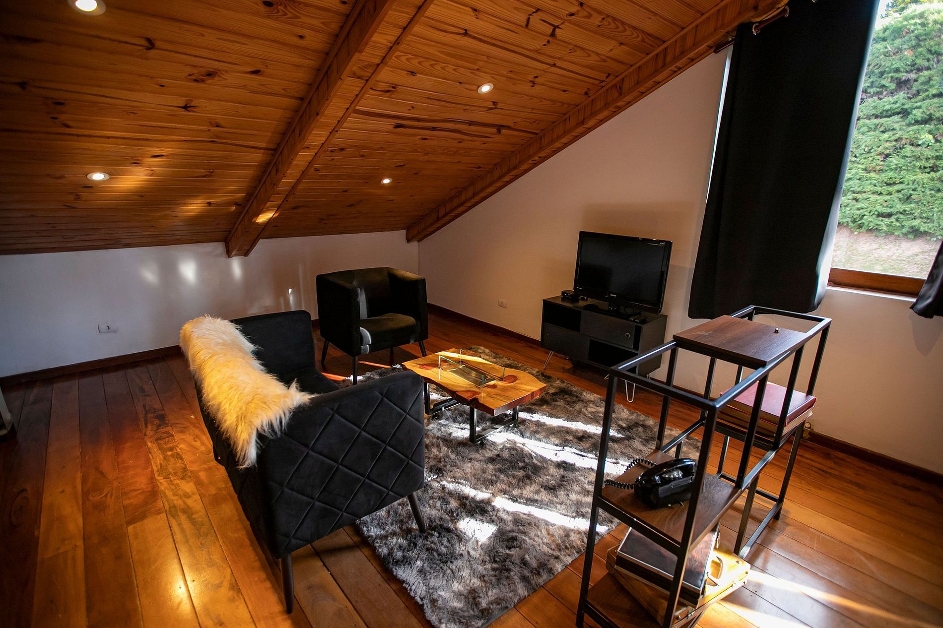 Loft moderno e espaçoso ideal para acomodar casais. A acomodação possui uma cama de casal (com lençol térmico) e 1 cama de solteiro, uma jacuzzi privativa, mini cozinha com utensílios básicos, sala de estar/jantar com lareira decorativa internet Wi-Fi e smart TV. Cesta de café da manhã está incluso na tarifa.