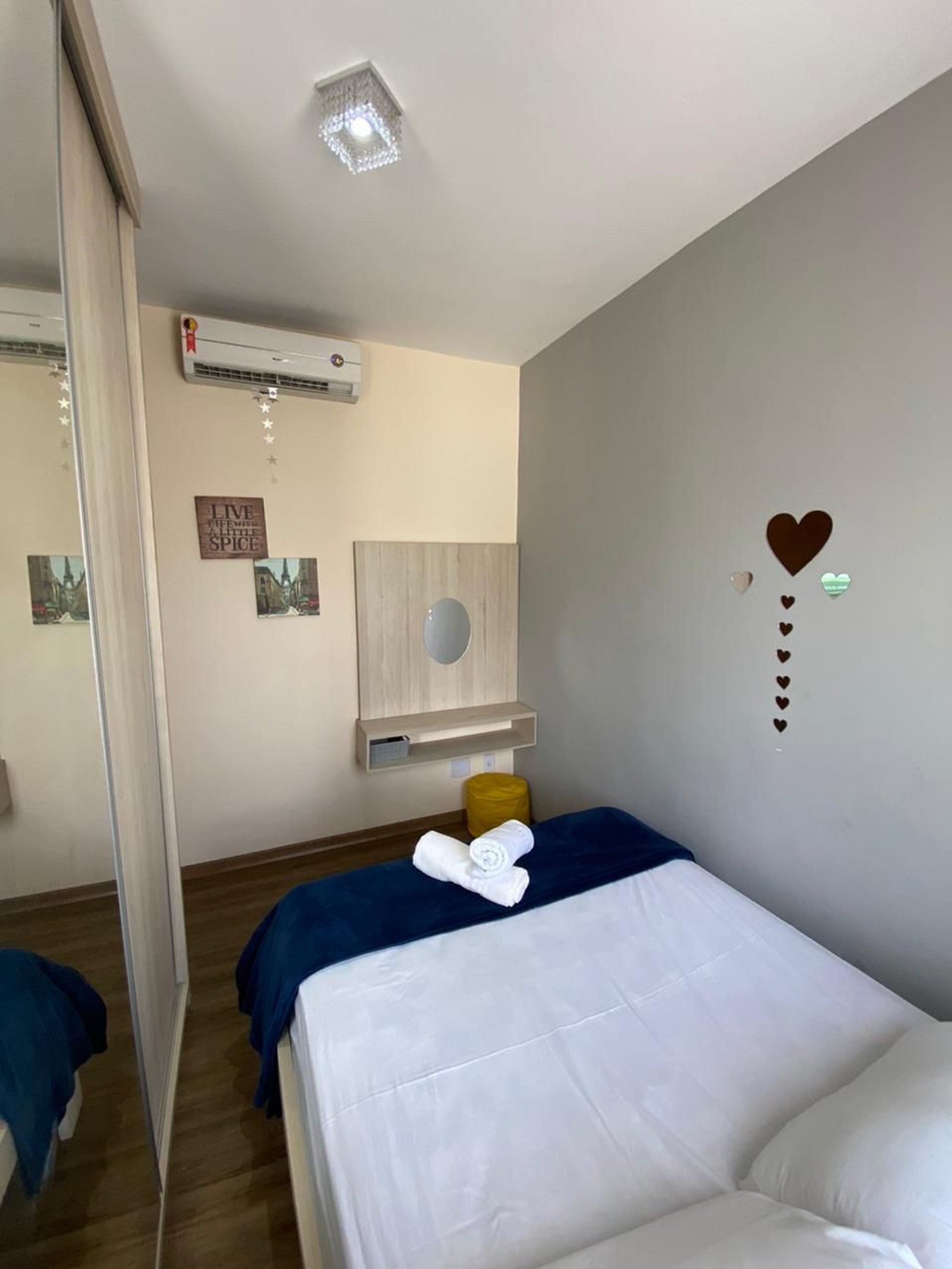 Está localizado no primeiro andar e é contemplado com dois quartos com ar condicionado, cozinha completa e equipada, um banheiro e uma lavandeira Na sala vocês podem contar com um sofá, televisão smart.