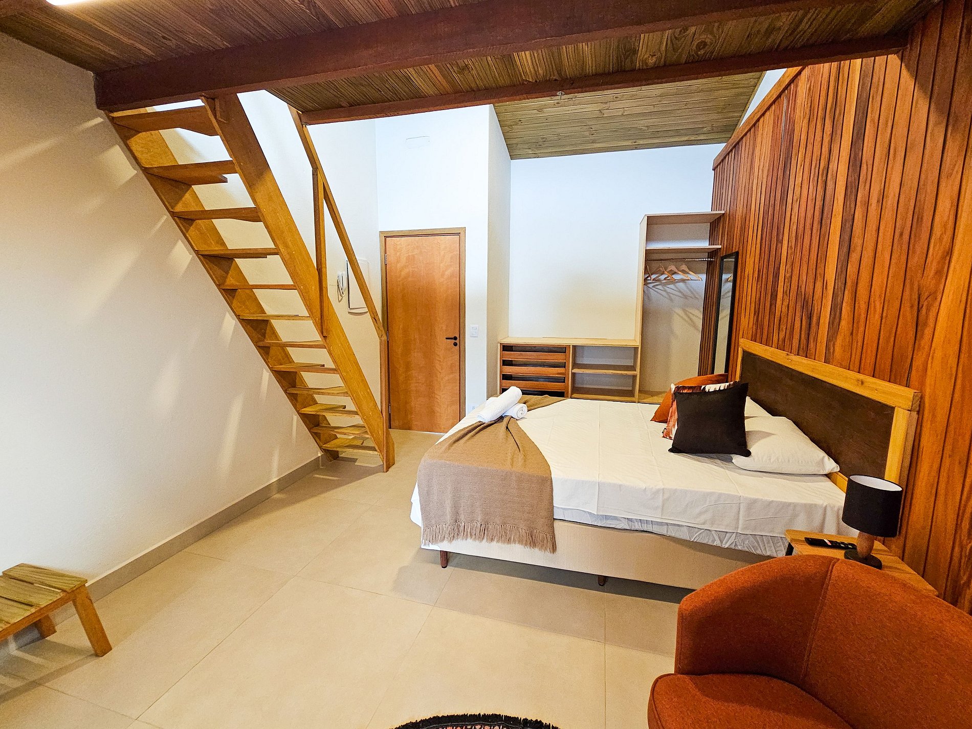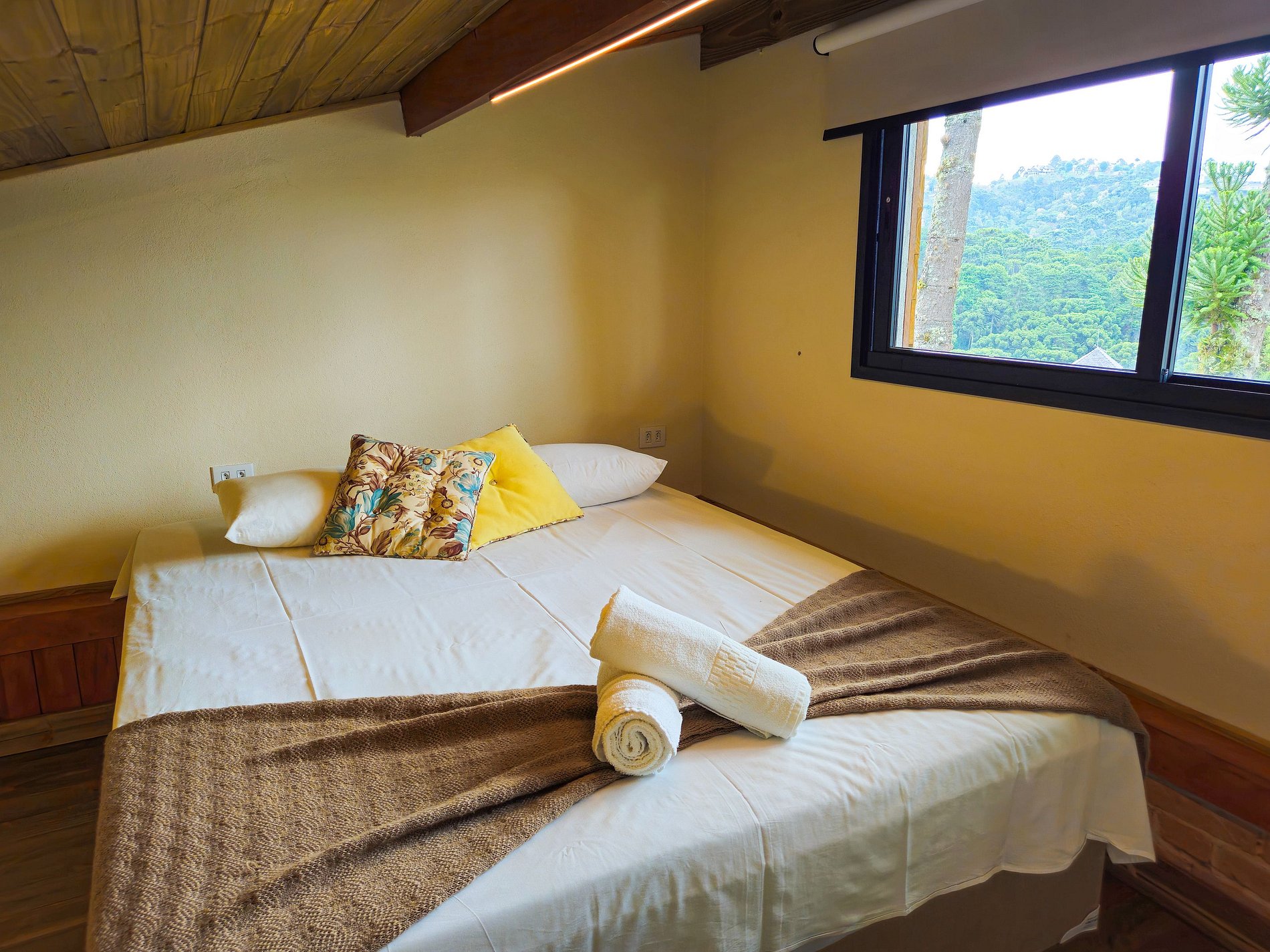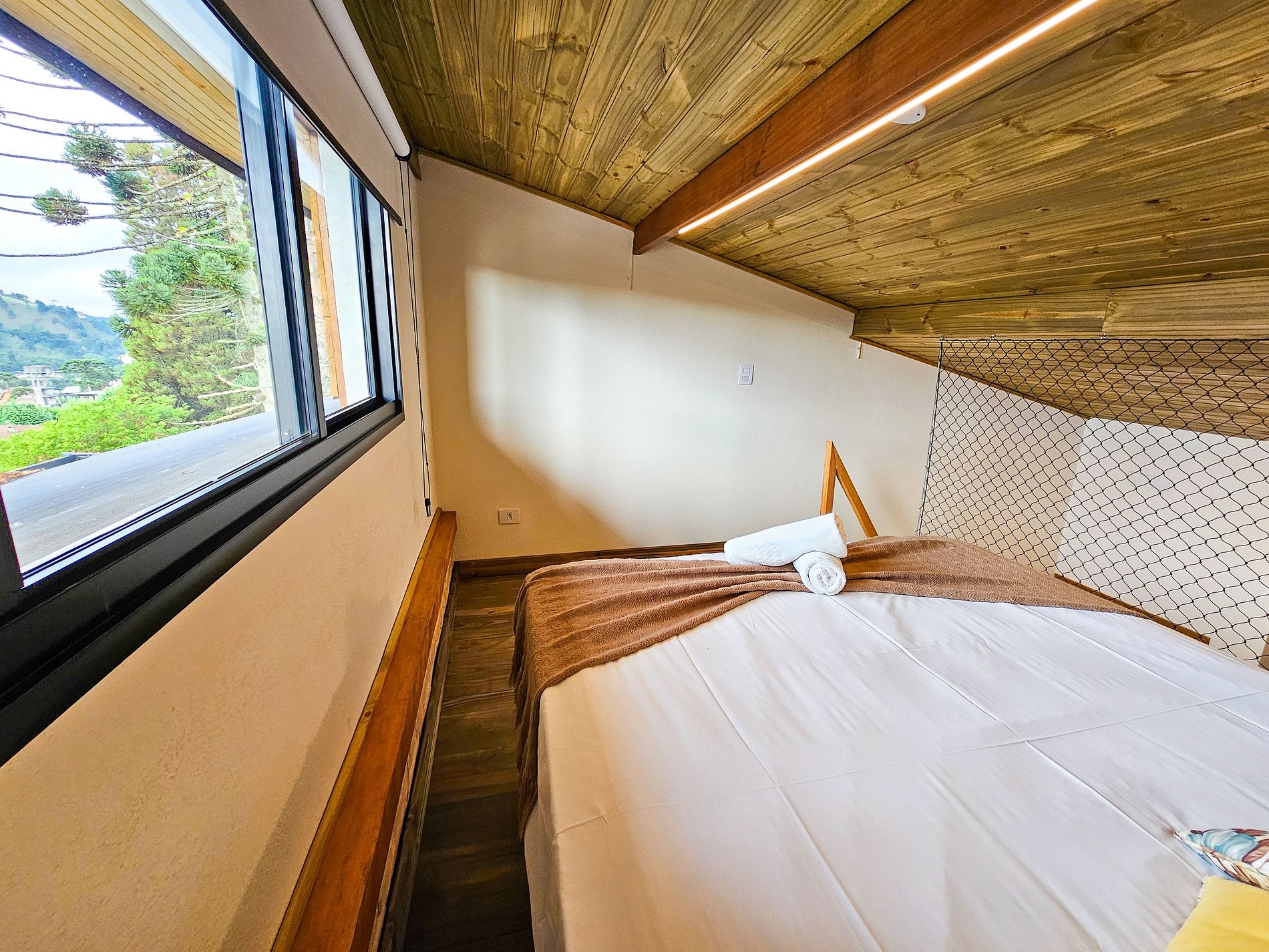 Nosso estúdio novo e moderno está localizado no coração do centro turístico do Capivari, composto por 1 suíte e 1 quarto suspenso com 1 cama de casal em cada para casais e famílias. Contamos com uma pequena sala de estar e cozinha equipada. Disponibilizamos roupa de cama e banho completo. Temos estacionamento cortesia no local. Disponibilizamos de internet wi-fi e possuímos TV smart. Contamos também com uma sala de estar de uso comum com lareira e jogos.
