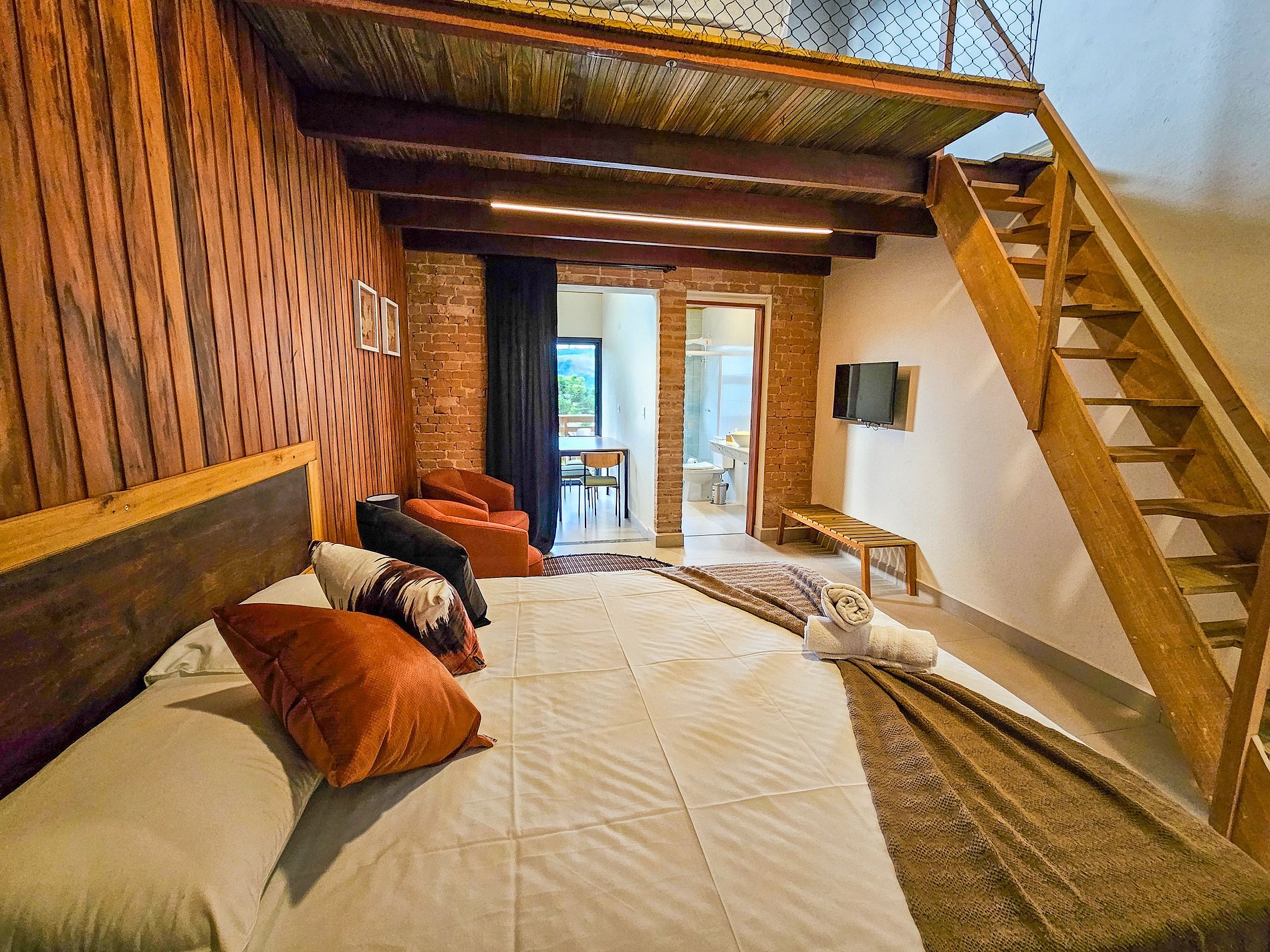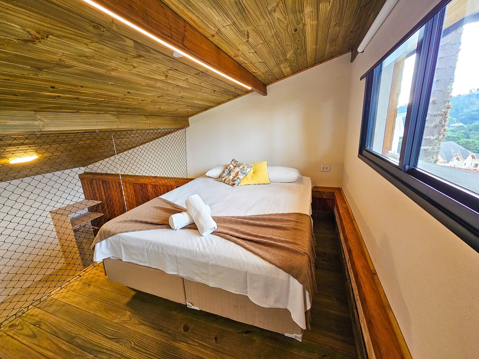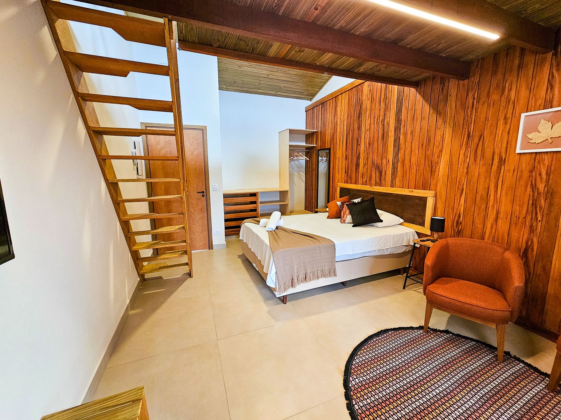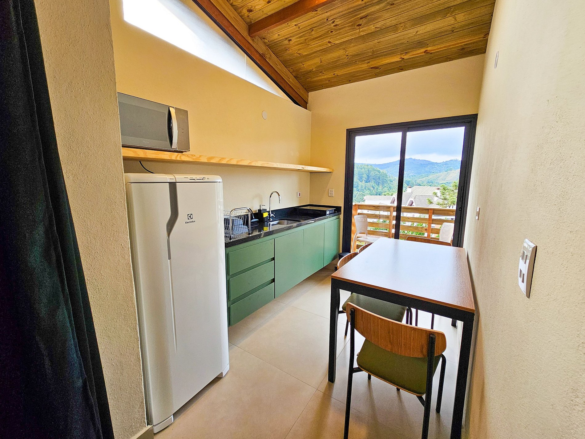 Nosso estúdio novo e moderno está localizado no coração do centro turístico do Capivari, composto por 1 suíte e 1 quarto suspenso com 1 cama de casal em cada para casais e famílias. Contamos com uma pequena sala de estar e cozinha equipada. Disponibilizamos roupa de cama e banho completo. Temos estacionamento cortesia no local. Disponibilizamos de internet wi-fi e possuímos TV smart. Contamos também com uma sala de estar de uso comum com lareira e jogos.
