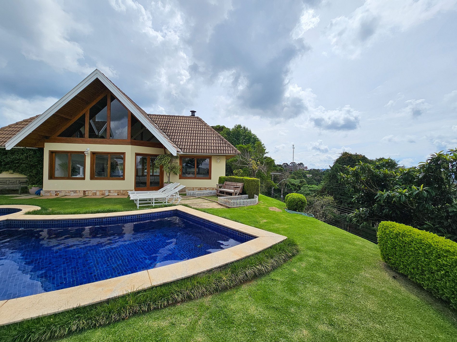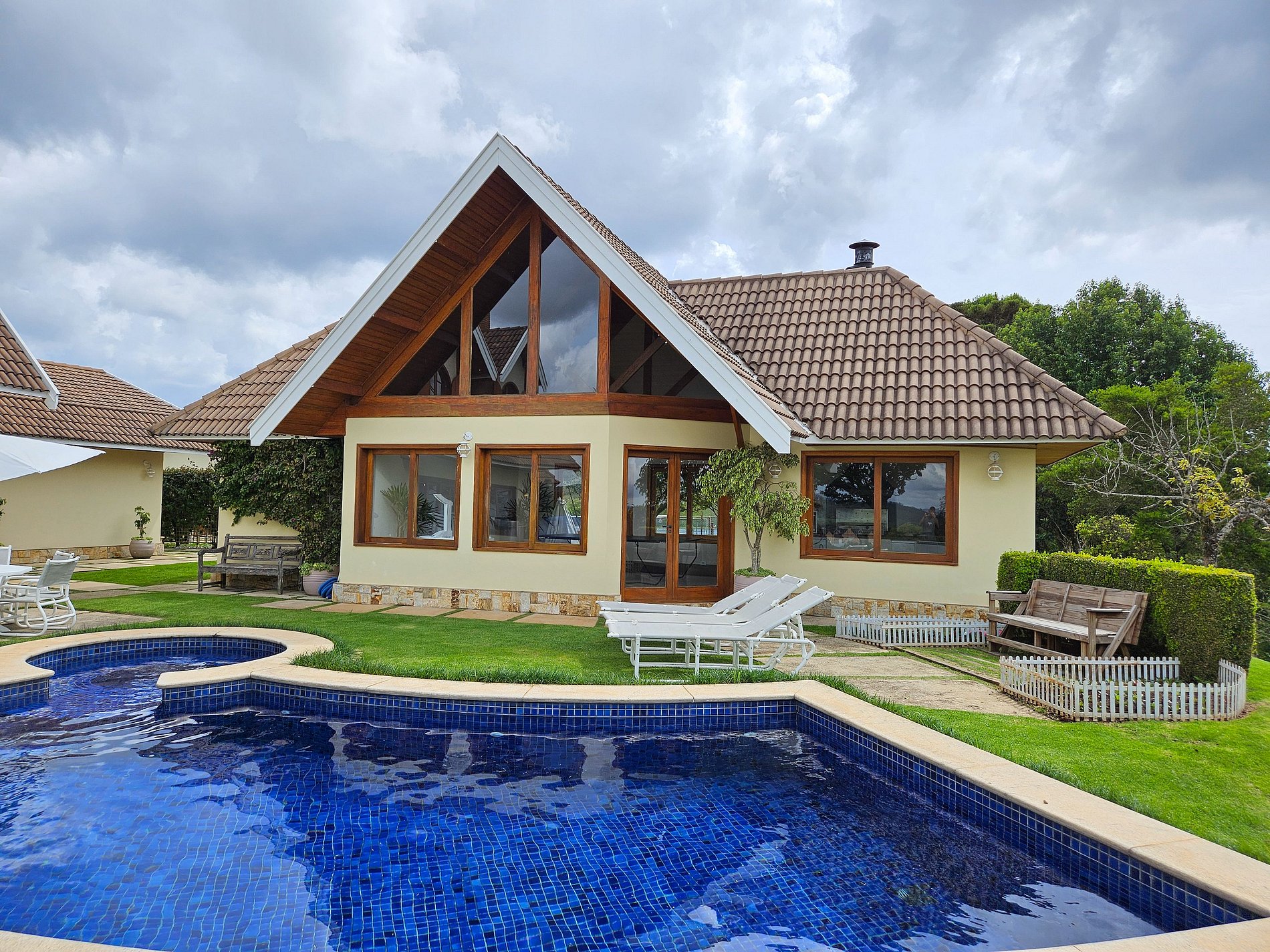 A casa está localizada a 2,4 km do centrinho de Capivari , no bairro Colinas de Capivari local seguro e tranquilo, composta por 5 suítes espaçosos para casais e famílias. Contamos com uma sala com lareira e sala de jantar. Belo jardim com piscina, Quadra de tenis e quadra de Beach Tenis, temos área para churrasco e uma horta orgânica com verduras e legumes, disponíveis para consumo no local. Internet Wi-Fi, TV smart. Disponibilizamos enxoval completo para os quartos e banheiros.