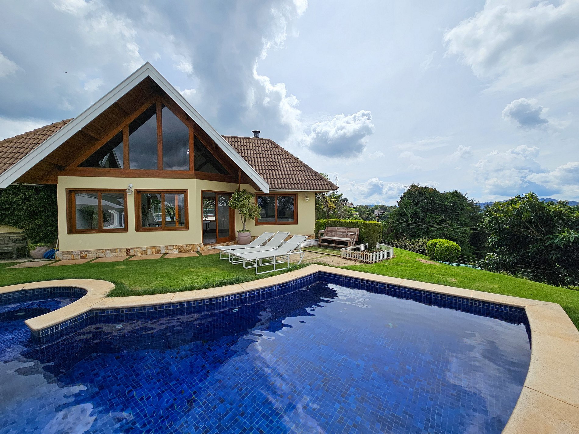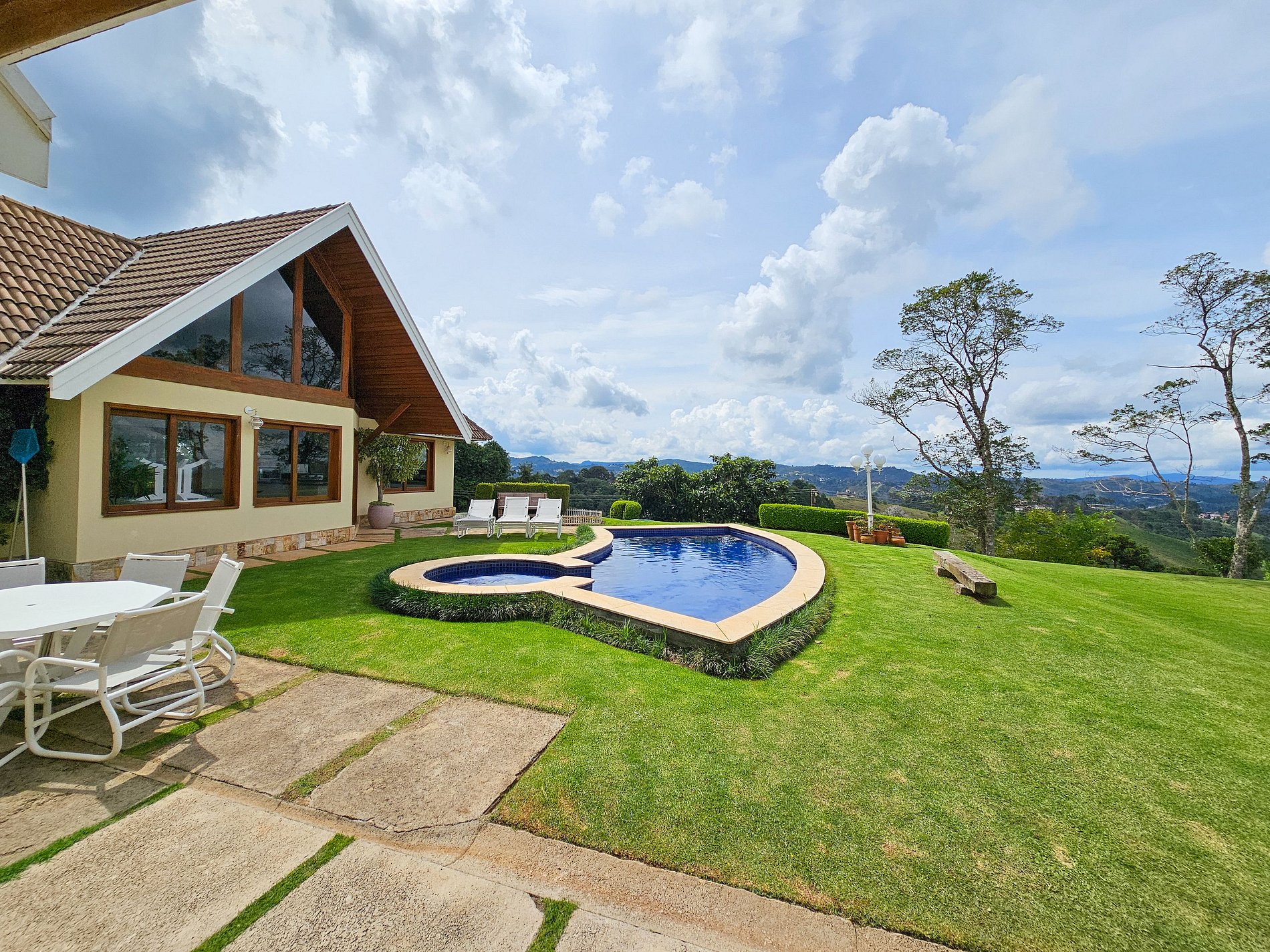 A casa está localizada a 2,4 km do centrinho de Capivari , no bairro Colinas de Capivari local seguro e tranquilo, composta por 5 suítes espaçosos para casais e famílias. Contamos com uma sala com lareira e sala de jantar. Belo jardim com piscina, Quadra de tenis e quadra de Beach Tenis, temos área para churrasco e uma horta orgânica com verduras e legumes, disponíveis para consumo no local. Internet Wi-Fi, TV smart. Disponibilizamos enxoval completo para os quartos e banheiros.
