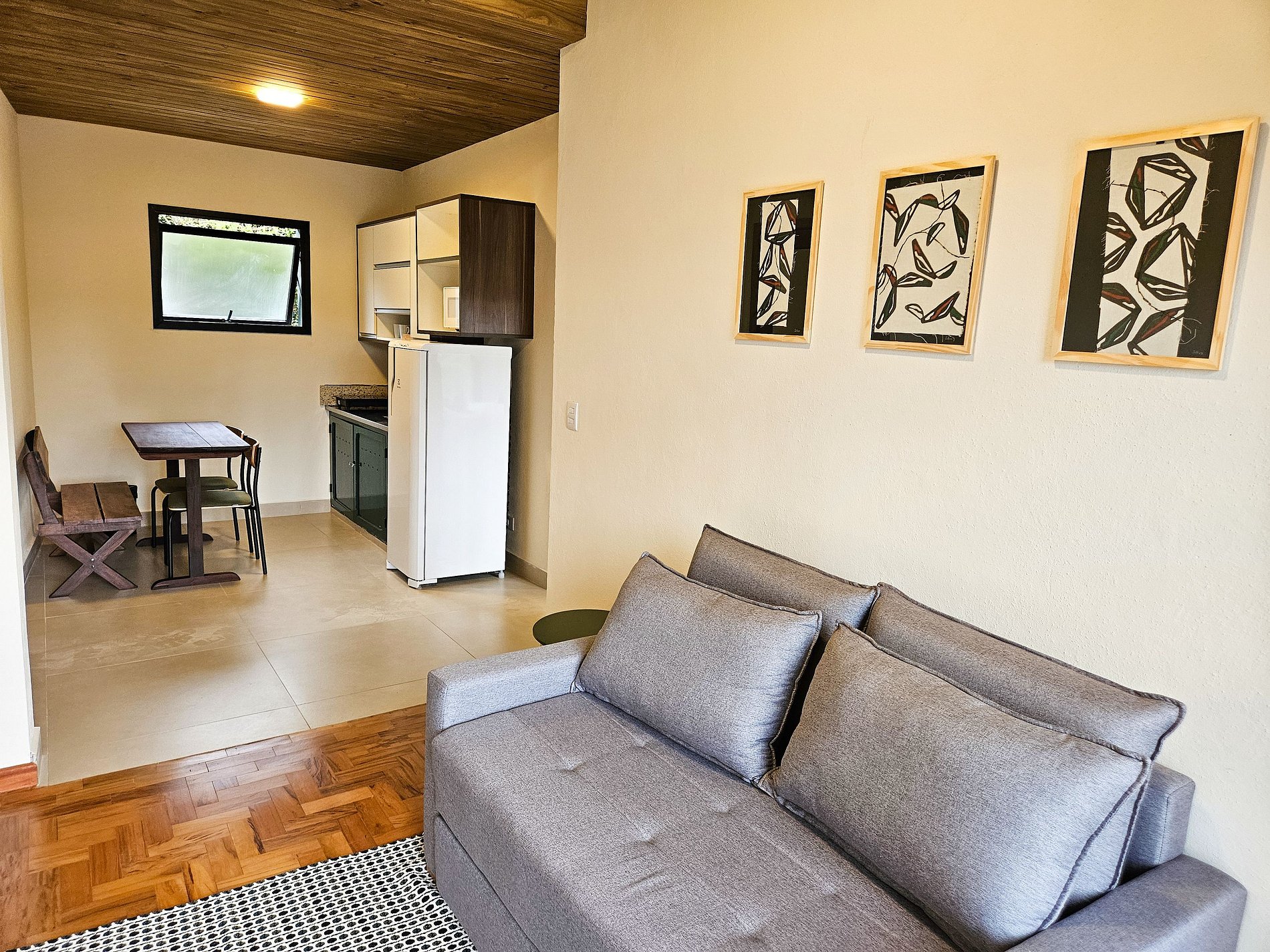 Nosso estúdio novo e moderno está localizado no coração do centro turístico de Capivari, composto por 1 suíte e 1 quarto suspenso com 1 cama de casal em cada para casais e famílias. Contamos com uma pequena sala de estar e cozinha equipada. Disponibilizamos roupa de cama e banho completo. Temos estacionamento cortesia no local. Disponibilizamos de internet wi-fi e possuímos TV smart. Contamos também com uma sala de estar de uso comum com lareira e jogos.