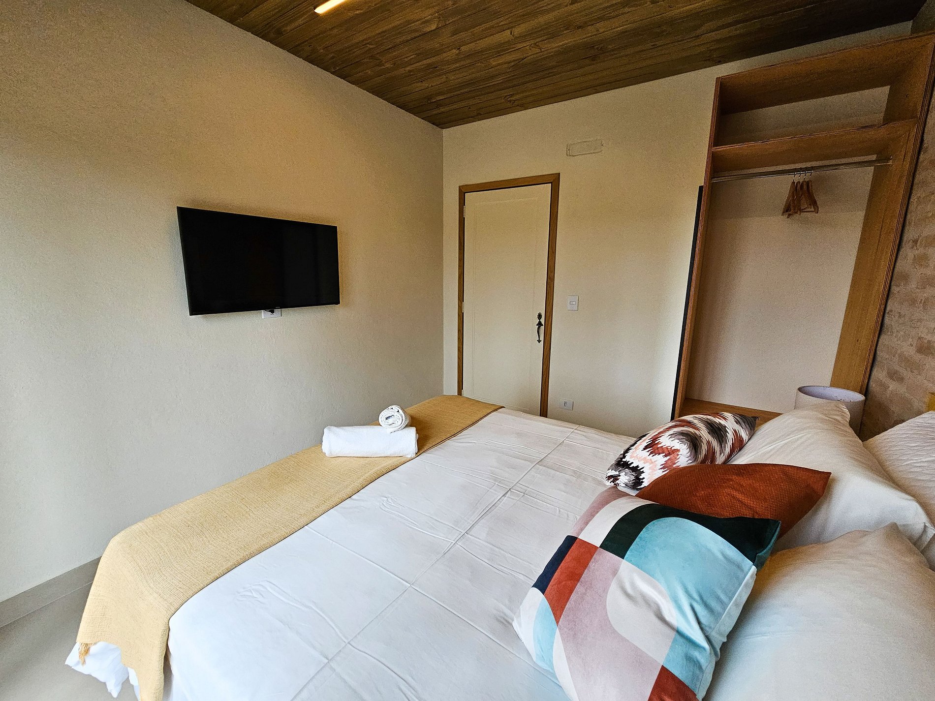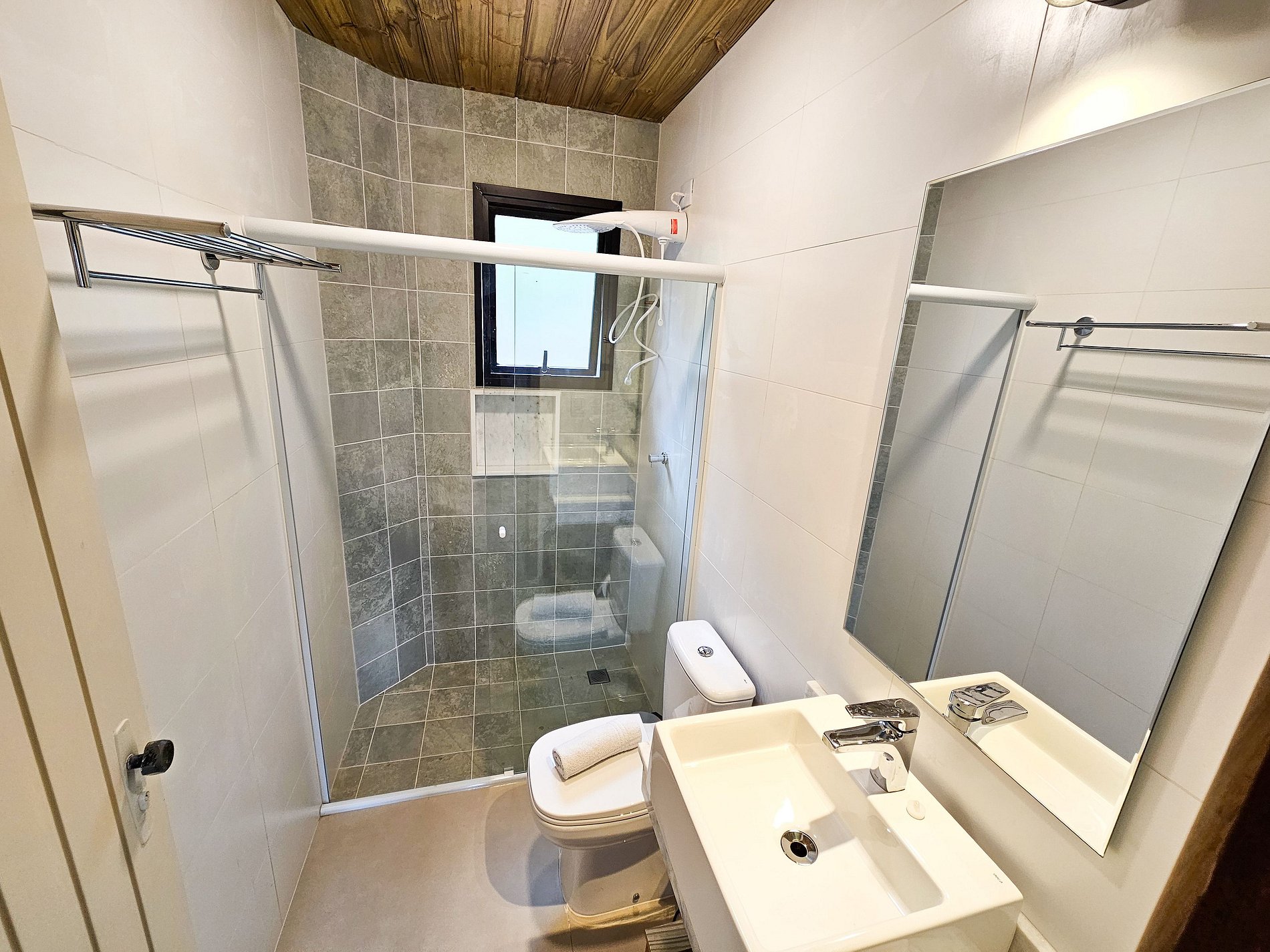 Fornecemos roupas de camas, cobertas bem quentinha e banho, mas não possui aquecedores.