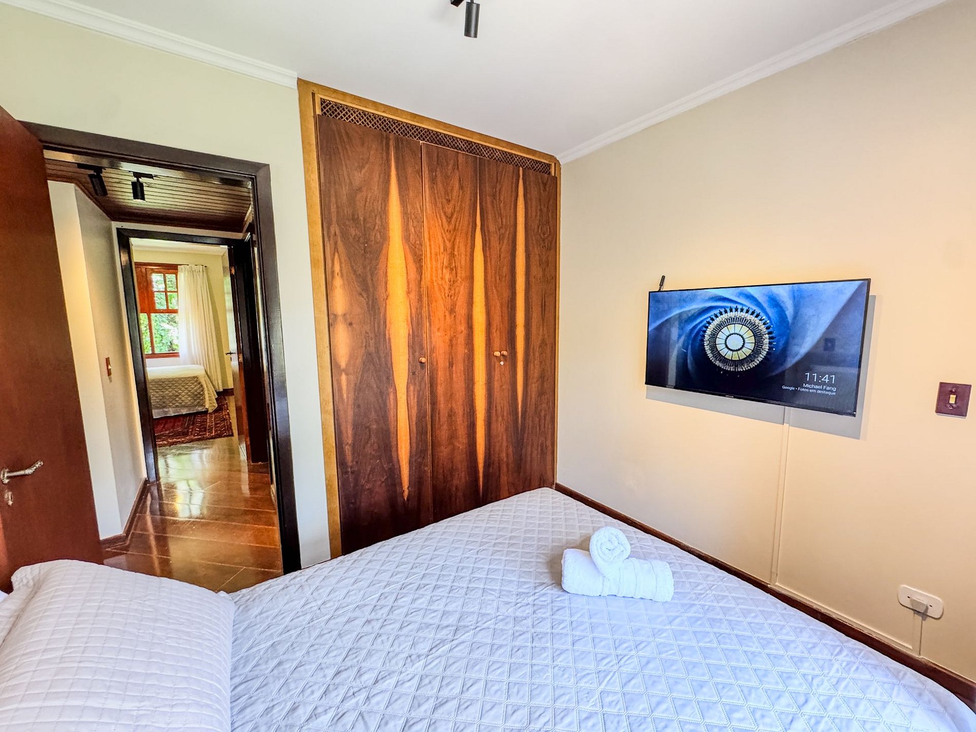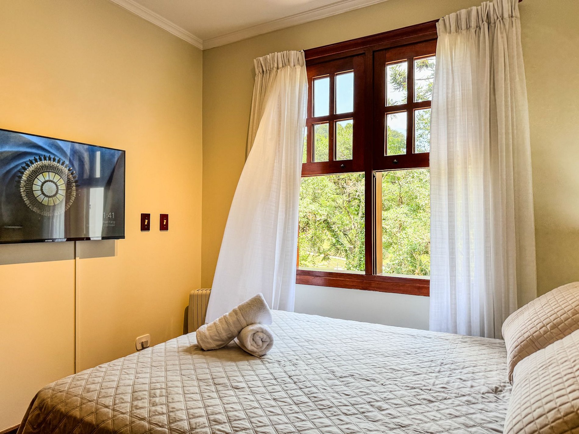O apartamento está localizado a 10 minutos caminhando do centrinho de Capivari , local seguro e tranquilo, composto por 2 quartos e 1 suíte com banheira de imersão. Contamos com uma sala com lareira e espaço para o jantar. Cercado de muito verde, temos varanda, internet Wi-Fi, TV smart, churrasqueira e fogo de chão.