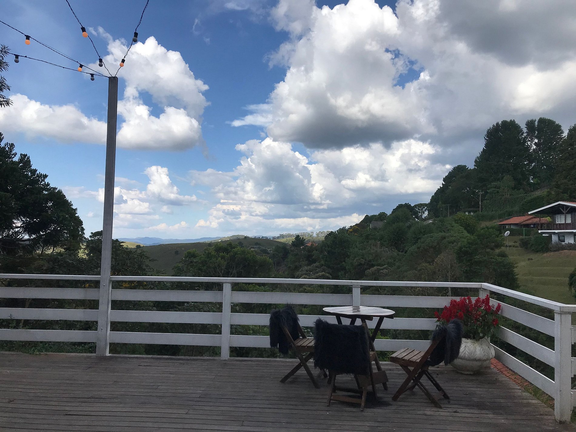 Pousada localizada no Alto do Capivari com as melhores vistas da região, com oito acomodações aconchegantes para casais ou famílias. A área externa tem um belo jardim e deck, com fogão de chão, com vista para as montanha onde se pode assistir os mais belos nascer e por do sol. Nosso jardim é compartilhado e tem um playground com brinquedos para crianças como pula-pula e golzinho de futebol. Temos área gourmet (sob reserva) com churrasqueira com utensílios para churrasco, como tábua, grelha e pegadores, fogão e forno a lenha.