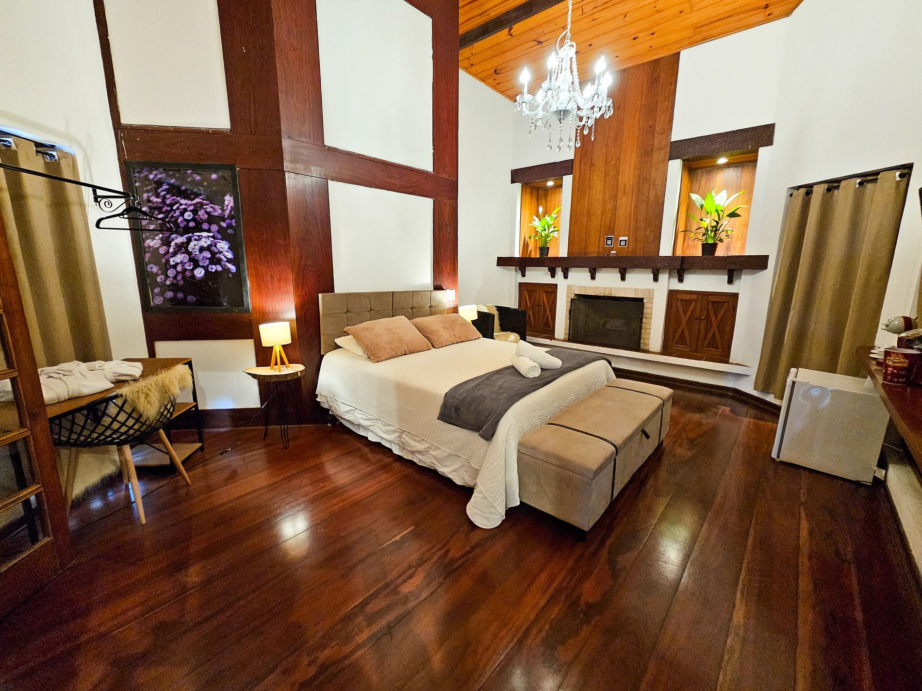 Suíte Inverness é uma das acomodações que compõe o Complexo Capivari Lodge, no bairro Alto Capivari. Nosso self checkin se inicia às 15h e saída até às 11h.