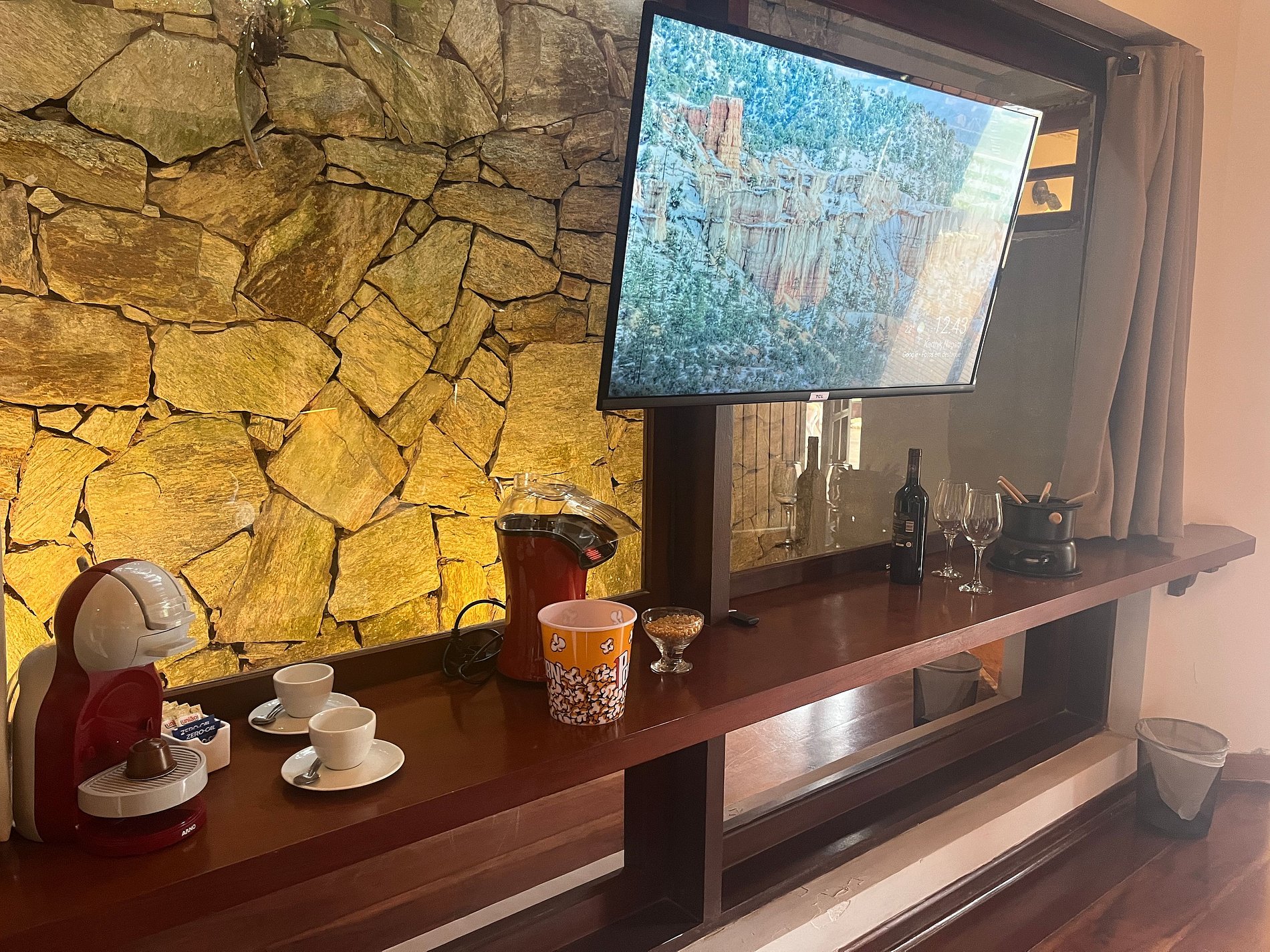 Internet Wi-Fi em todo ambiente e todas acomodações possuem TV smart.