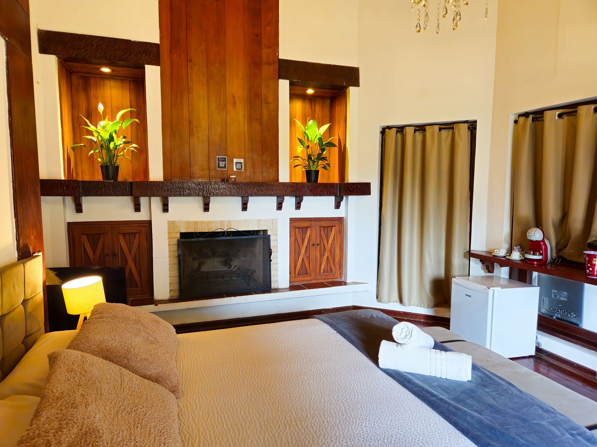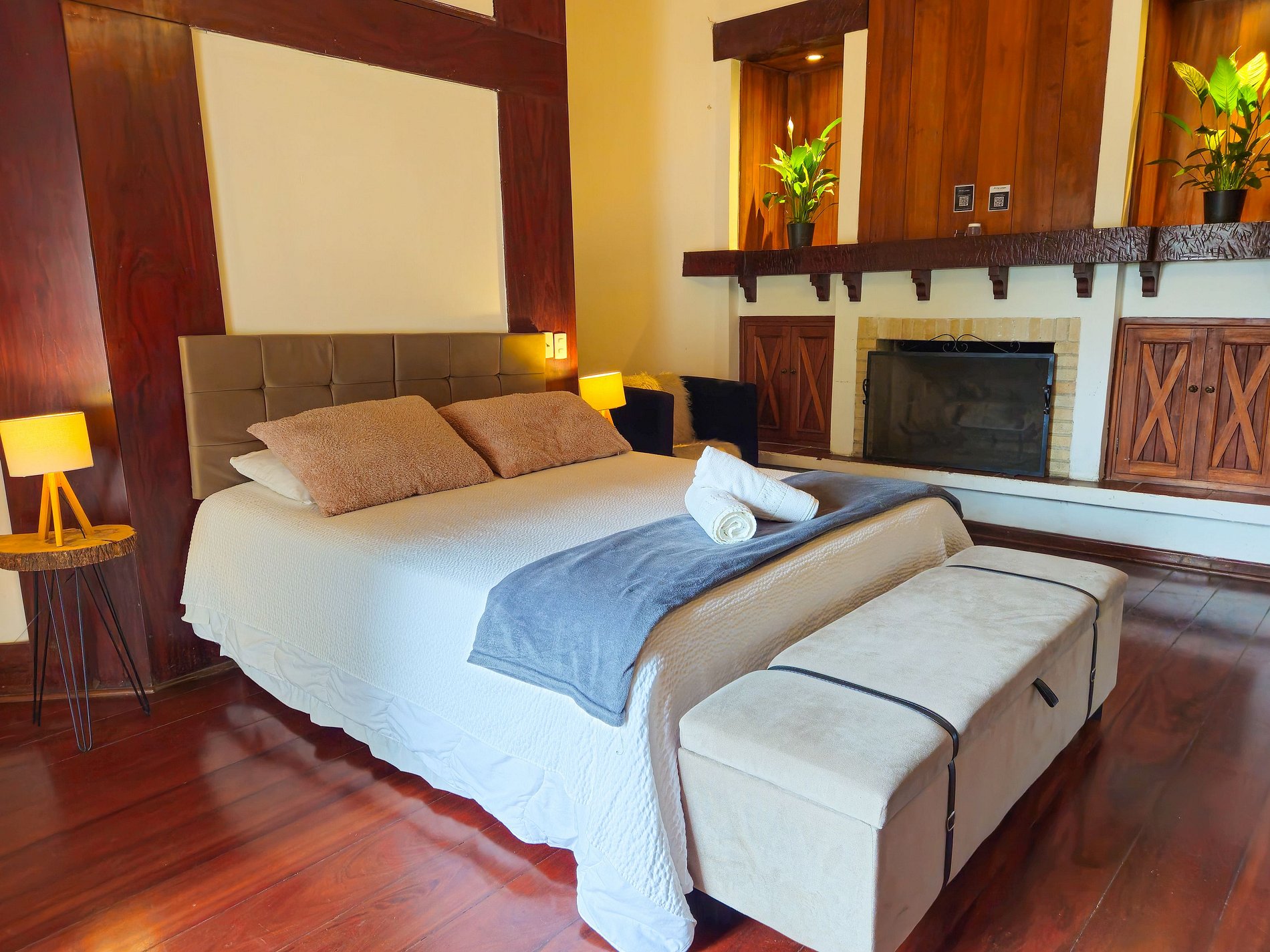 Temos lençóis térmicos nas camas de casais. Além de ter um QR code de como acender a lareira