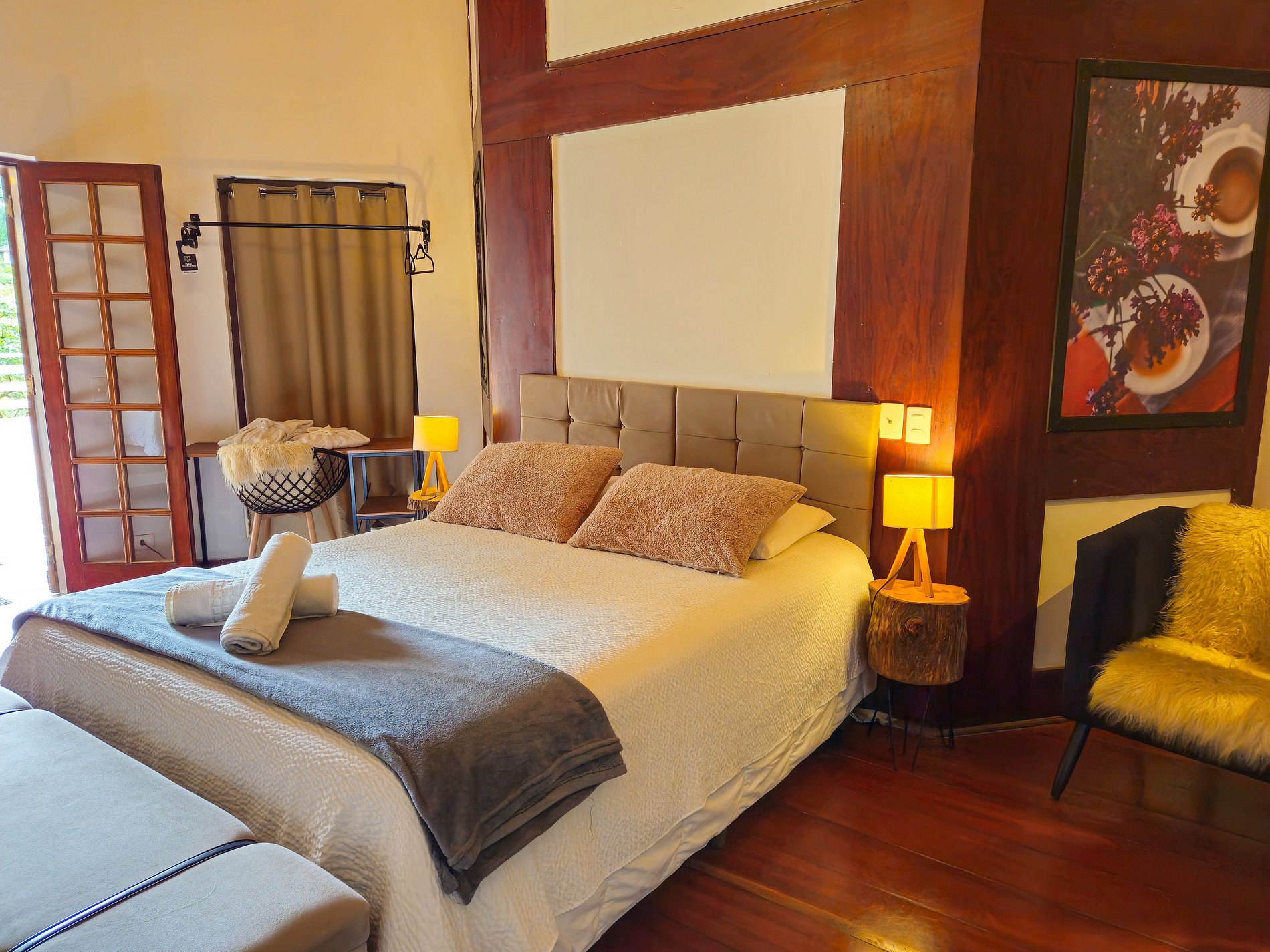 Suíte Inverness é uma das acomodações que compõe o Complexo Capivari Lodge, no bairro Alto Capivari. Nosso self checkin se inicia às 15h e saída até às 11h.