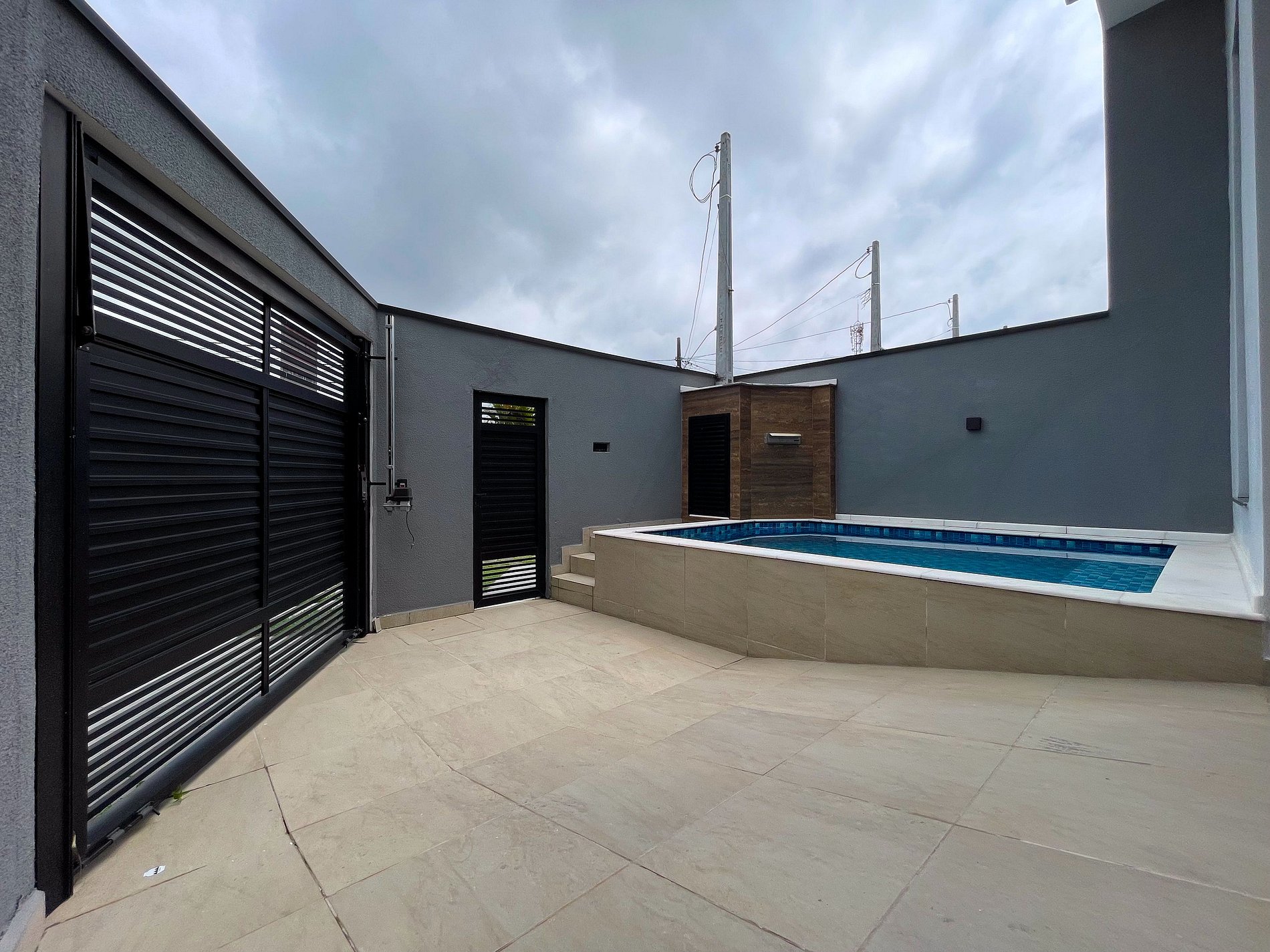 A área externa é um grande destaque, com piscina e espaço para churrasqueira, perfeita para relaxar após um dia de praia.