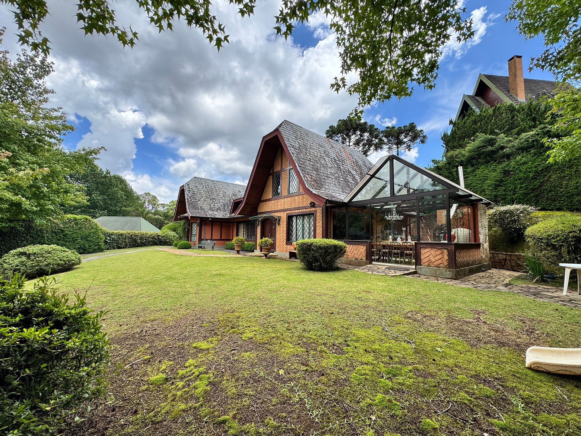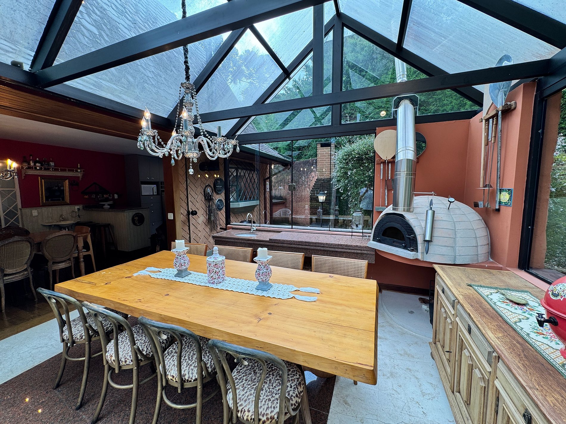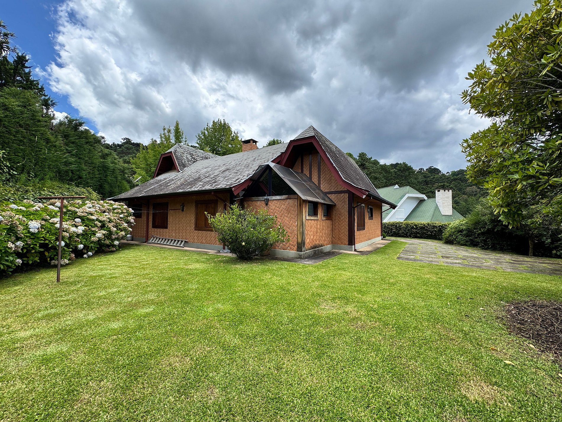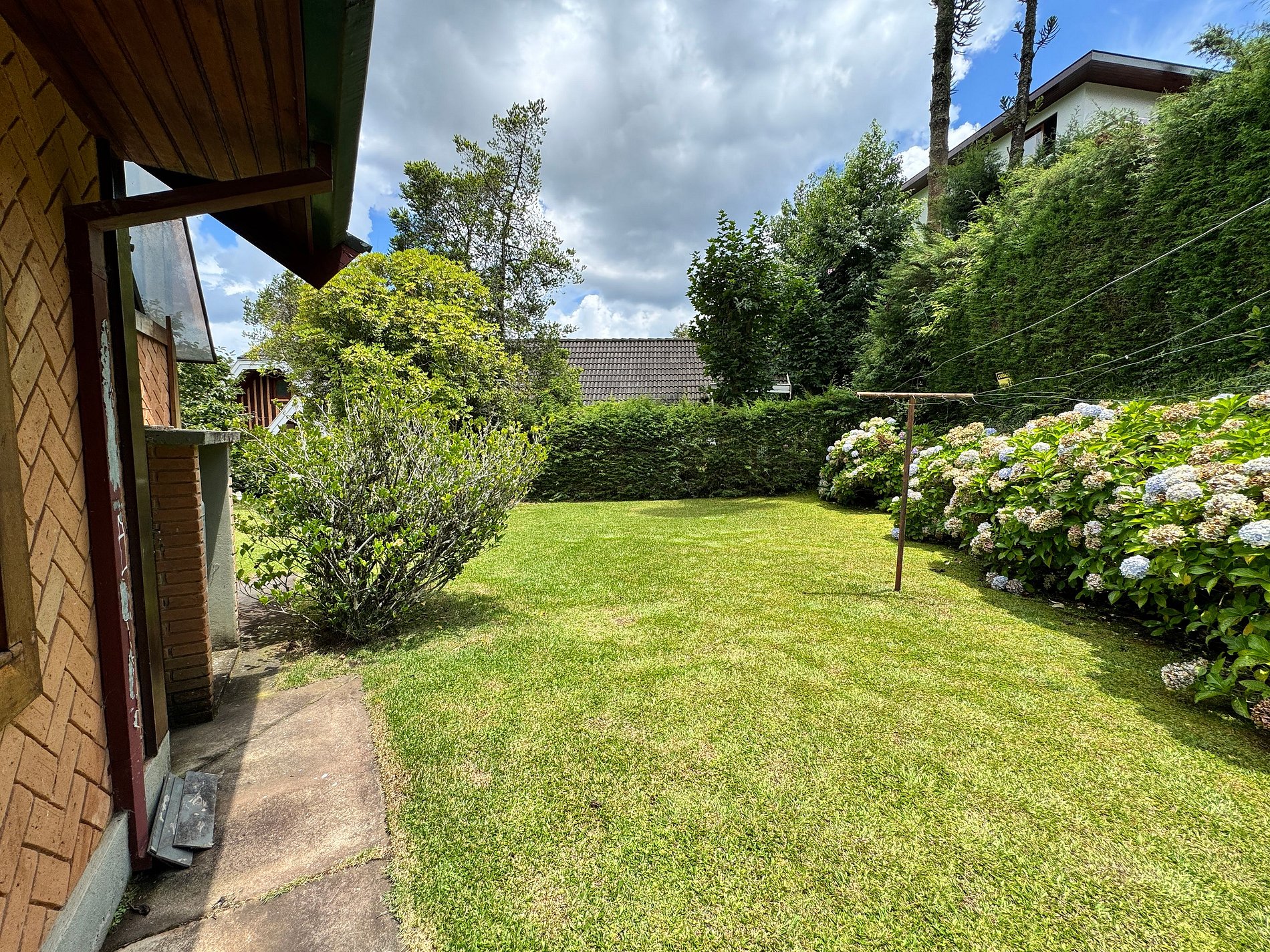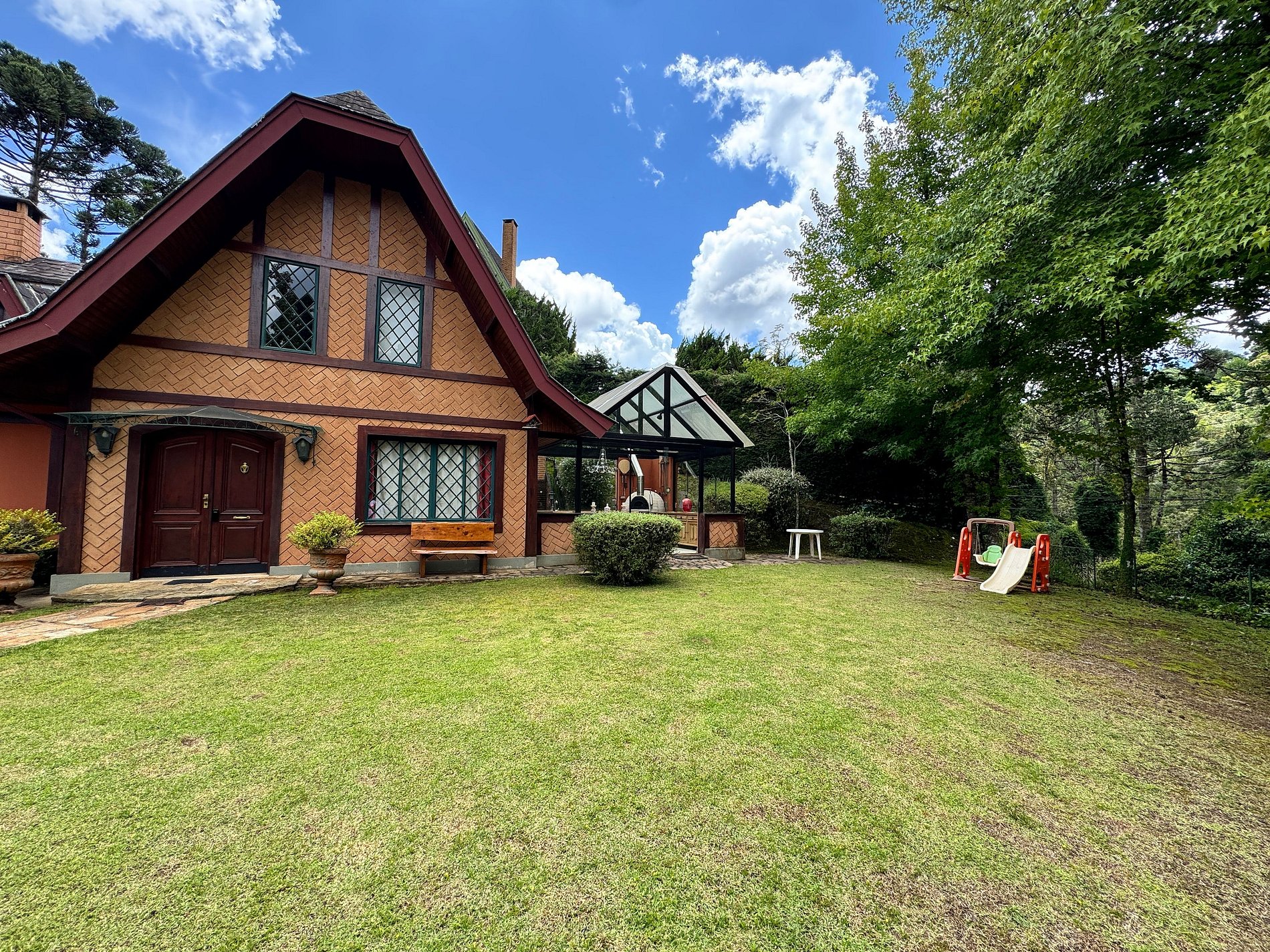 Dispomos de uma sala aconchegante com lareira e sala de jantar. O belo jardim é rodeado por muito verde e conta com área para churrasco e um parquinho infantil.