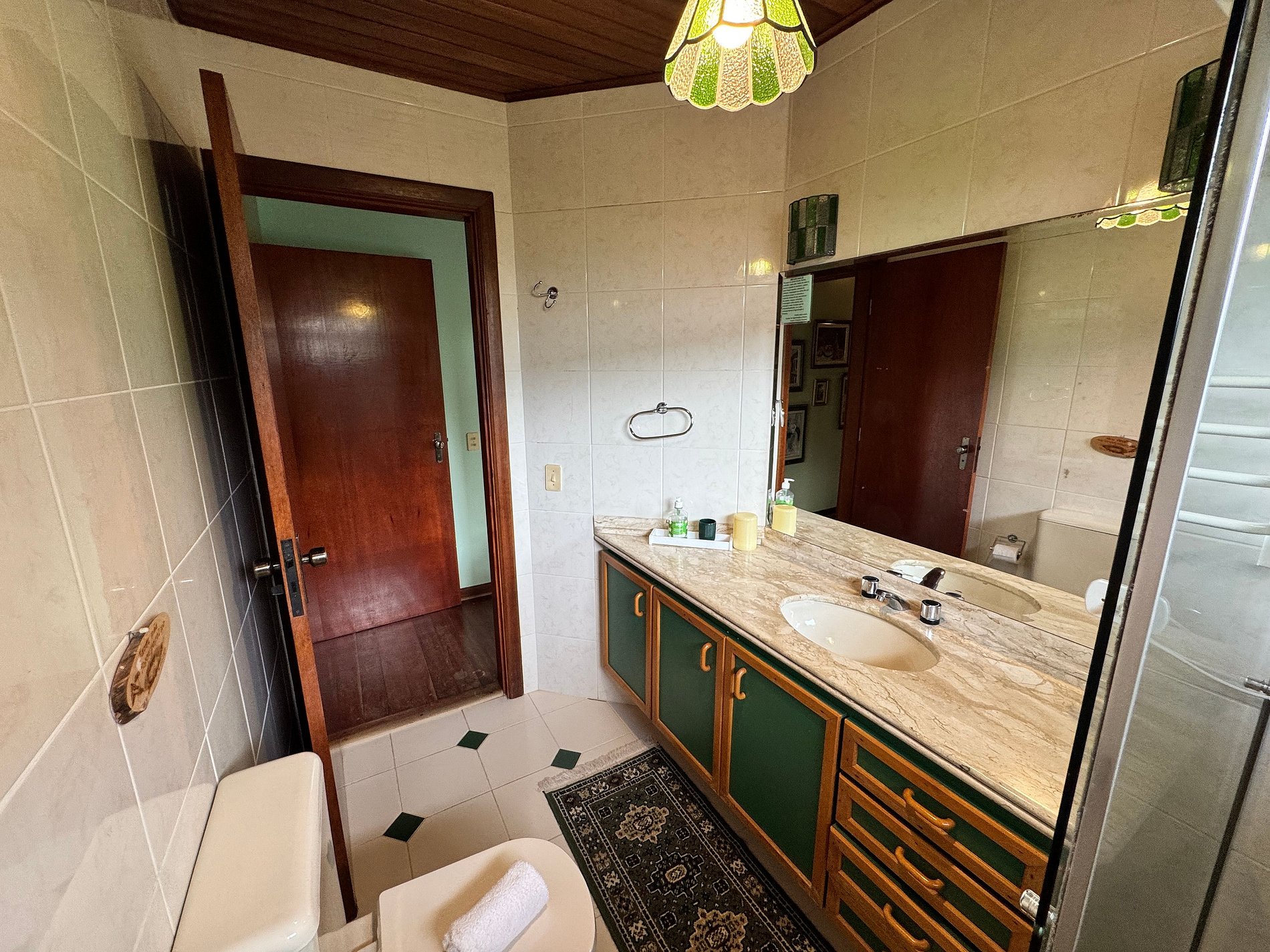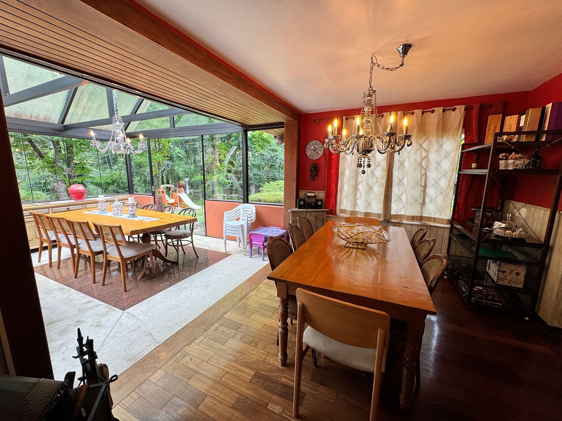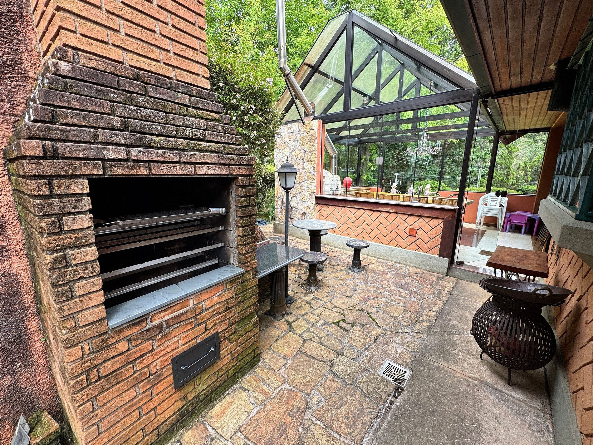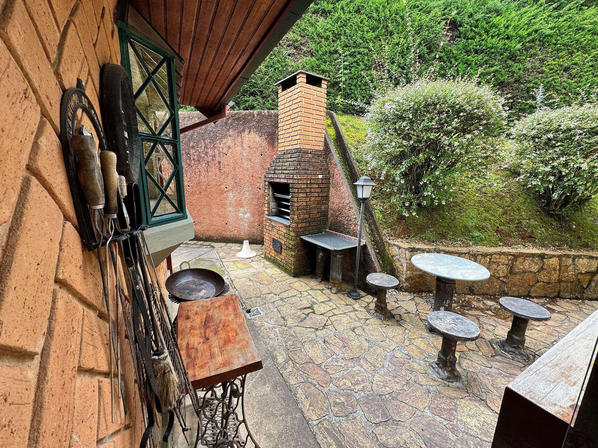Dispomos de uma sala aconchegante com lareira e sala de jantar. O belo jardim é rodeado por muito verde e conta com área para churrasco e um parquinho infantil.