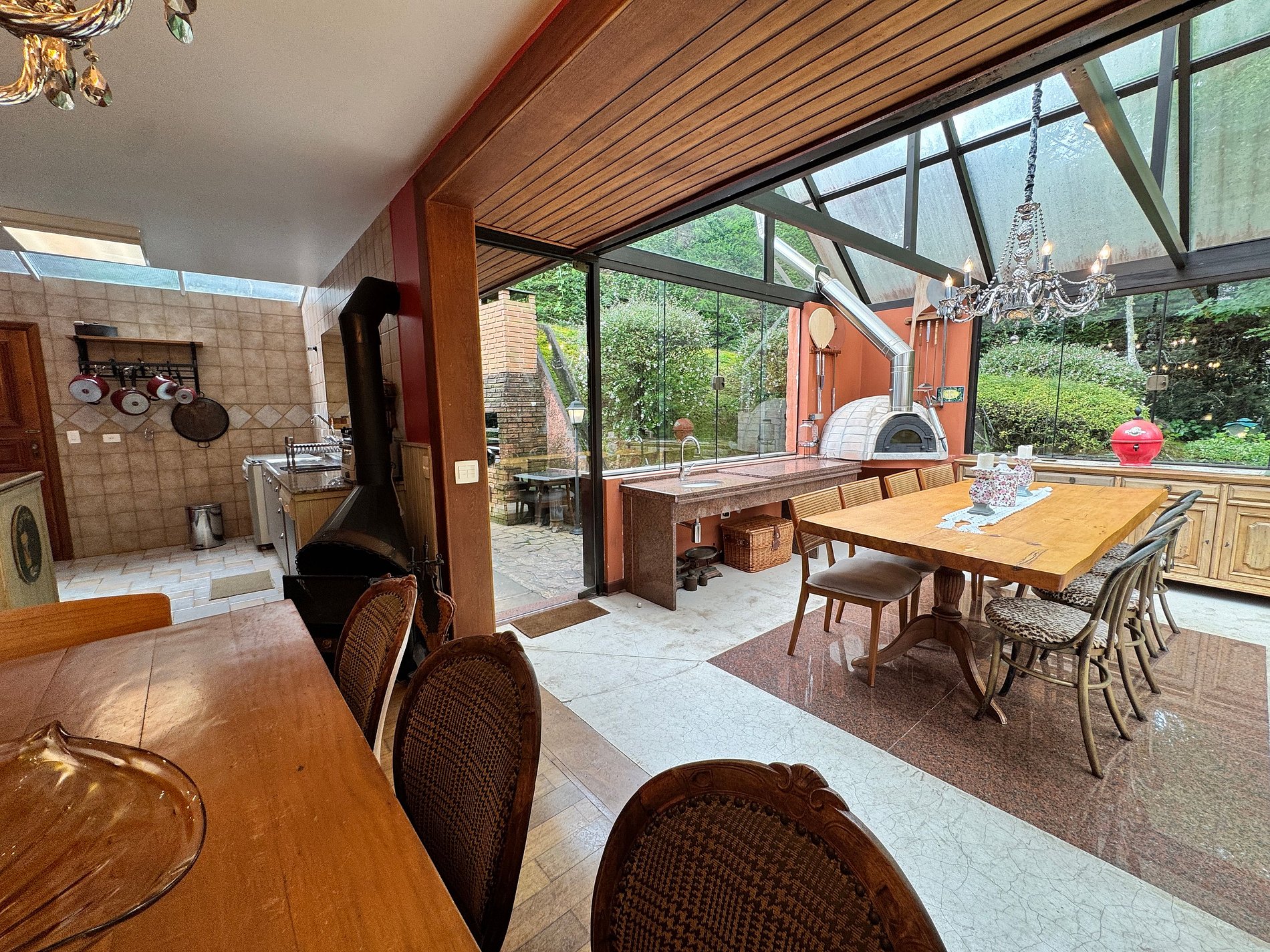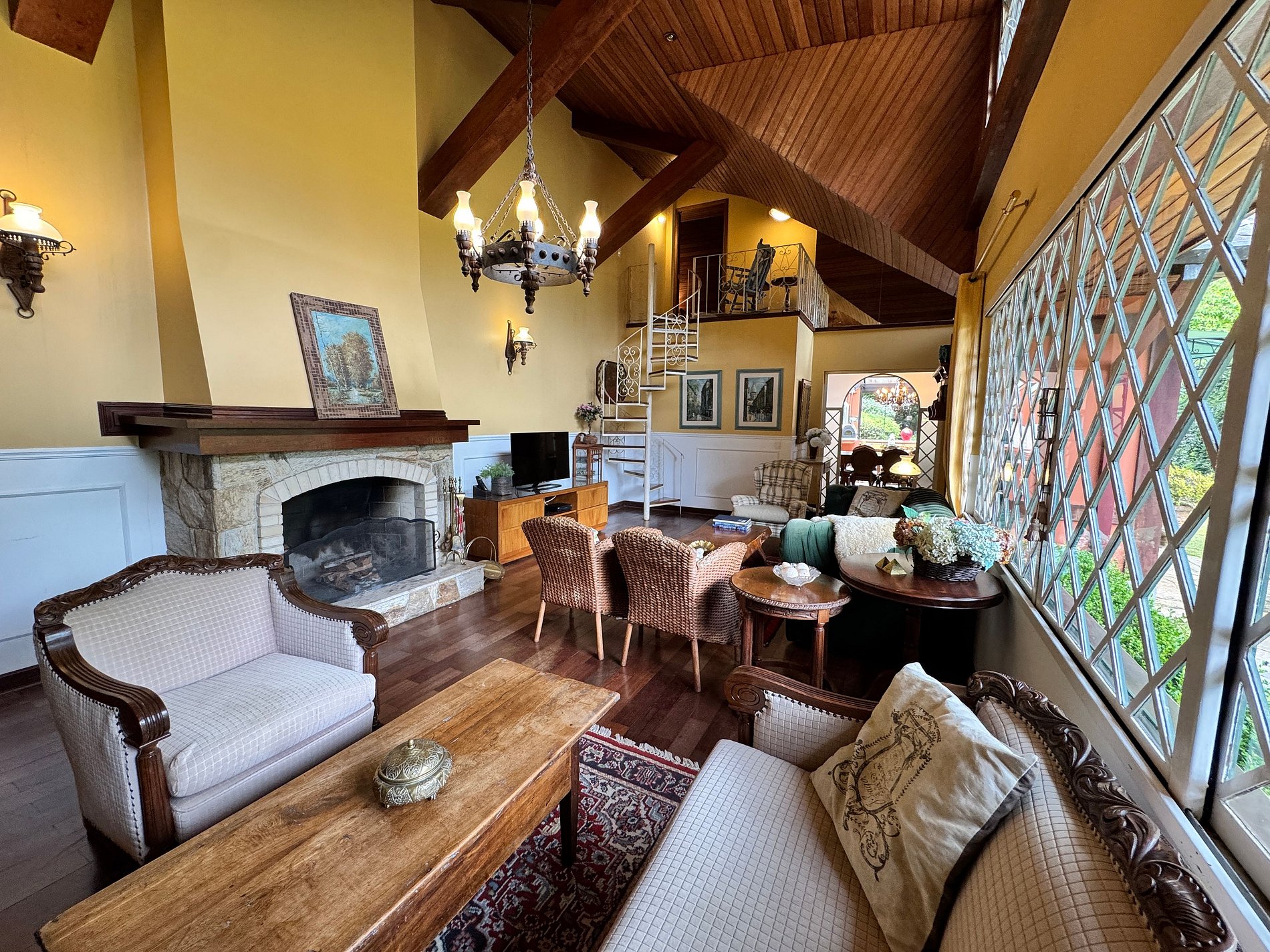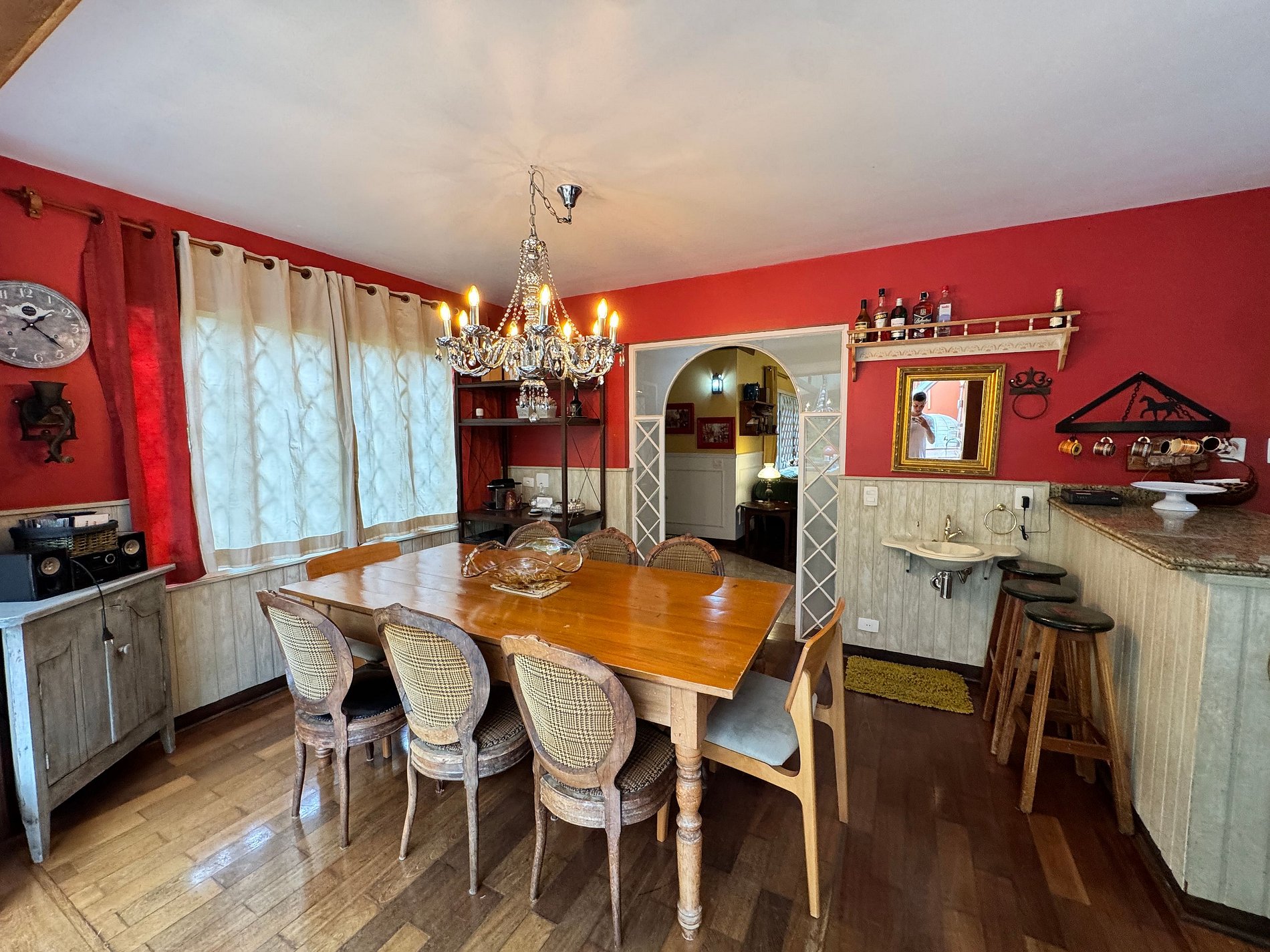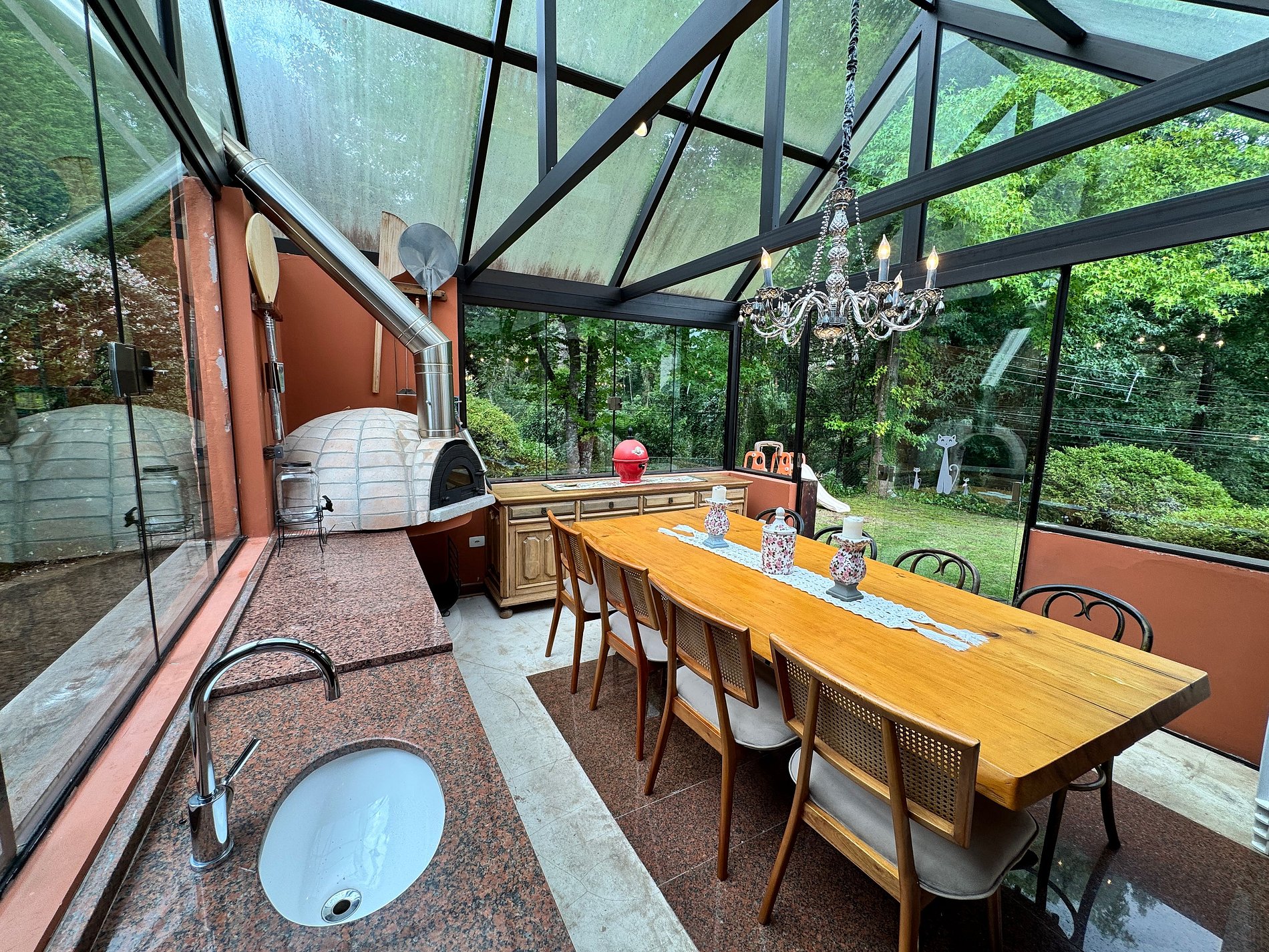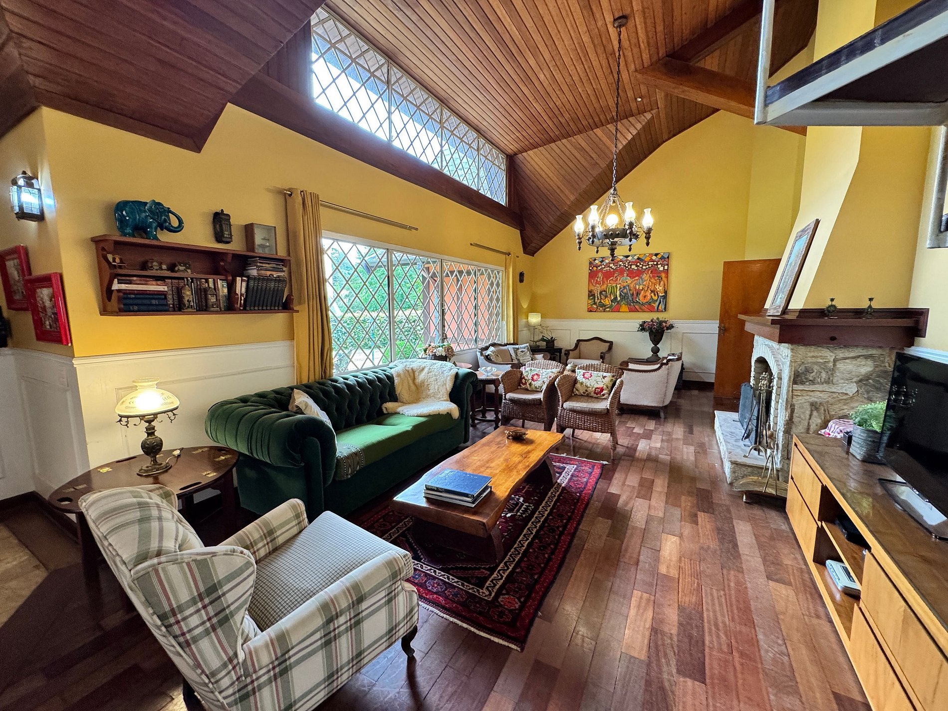 Dispomos de uma sala aconchegante com lareira e sala de jantar. O belo jardim é rodeado por muito verde e conta com área para churrasco e um parquinho infantil.