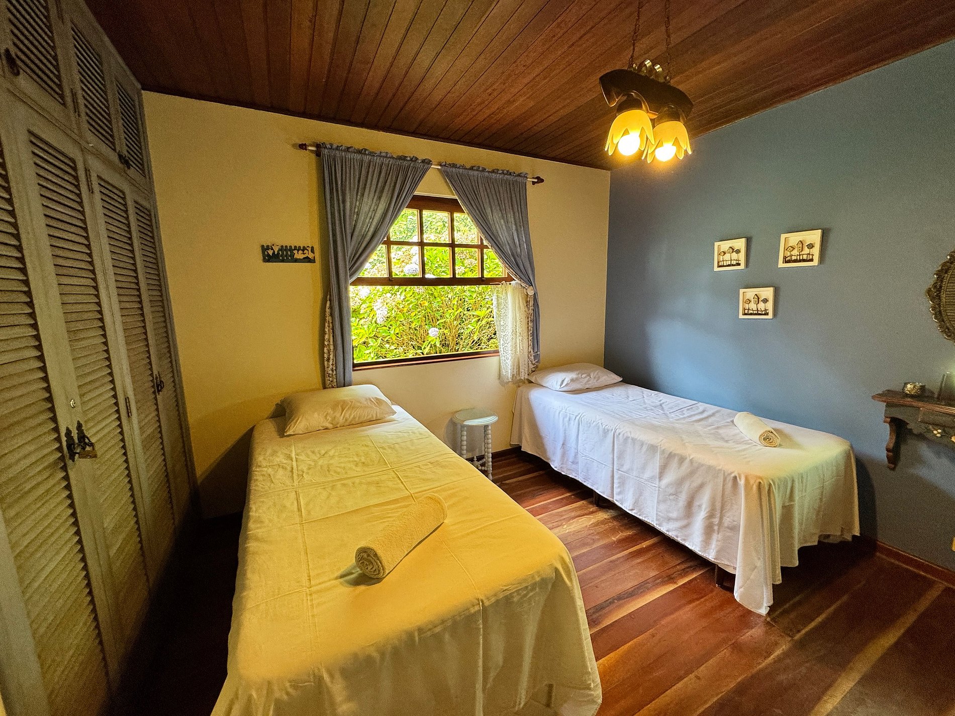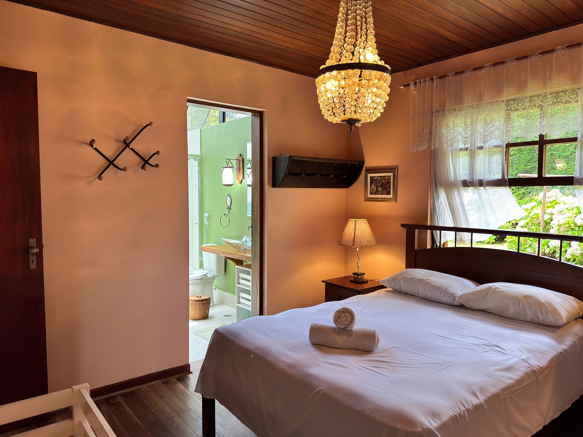 A casa está localizada a 1,5km do centrinho de Capivari, uma região segura, tranquila e cercada pela natureza. É composta por 5 suítes espaçosas, ideais para casais e famílias.