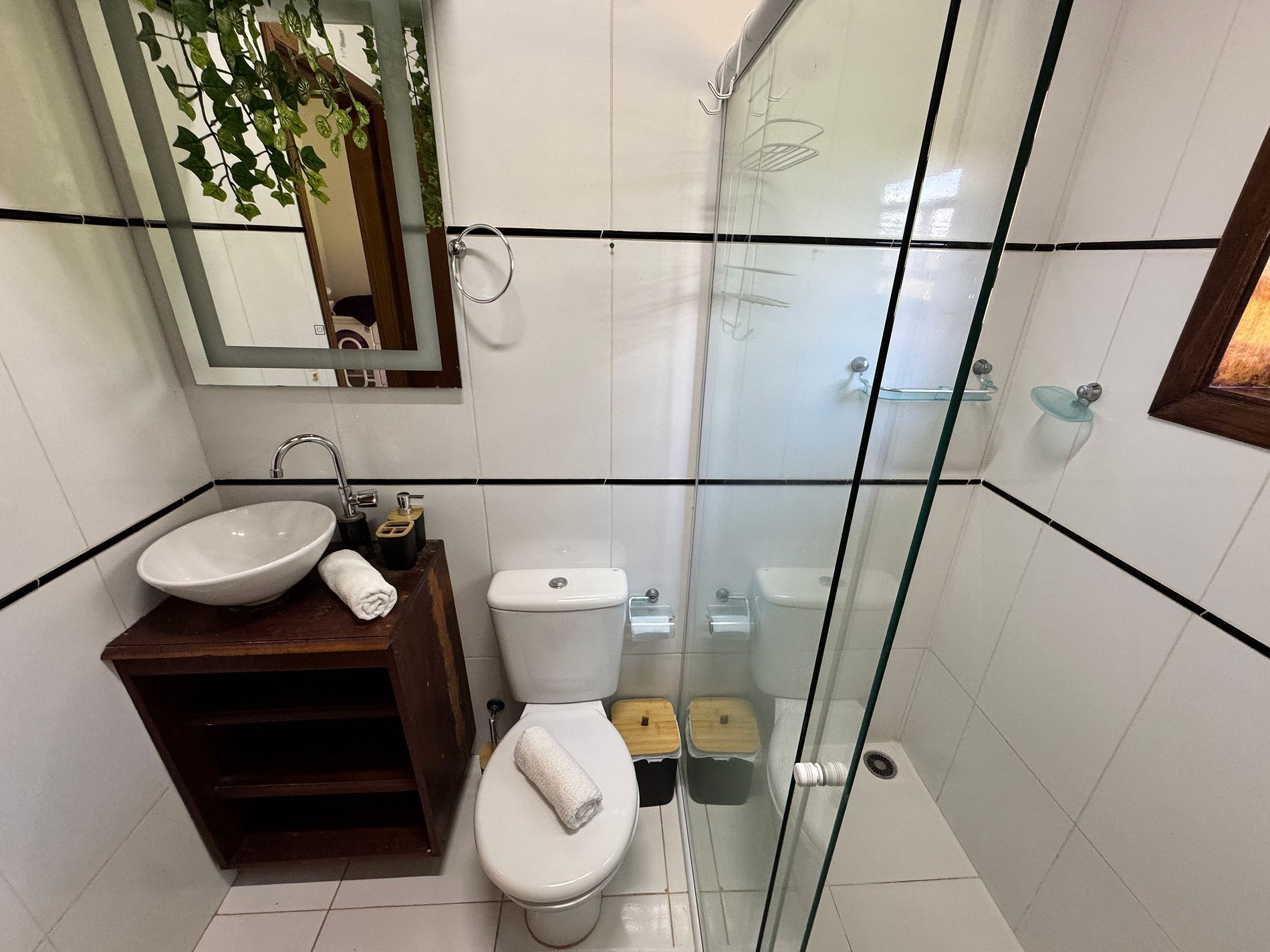 Oferecemos internet Wi-Fi e enxoval completo para quartos e banheiros.