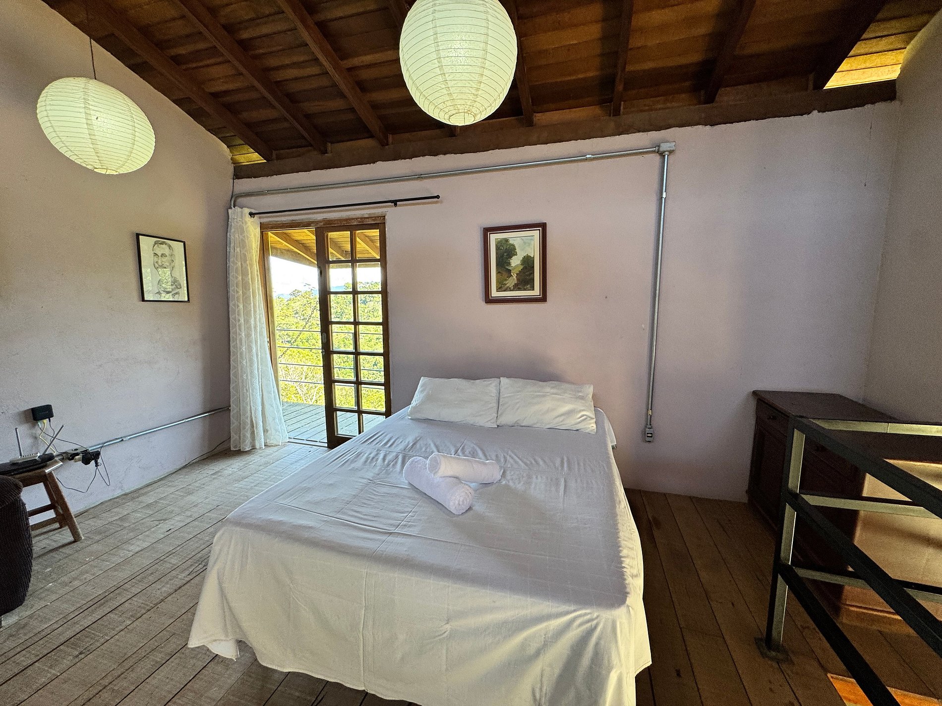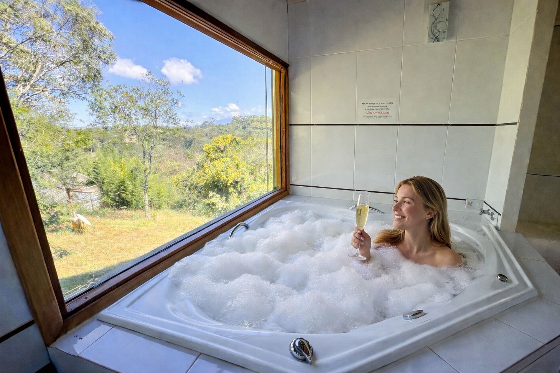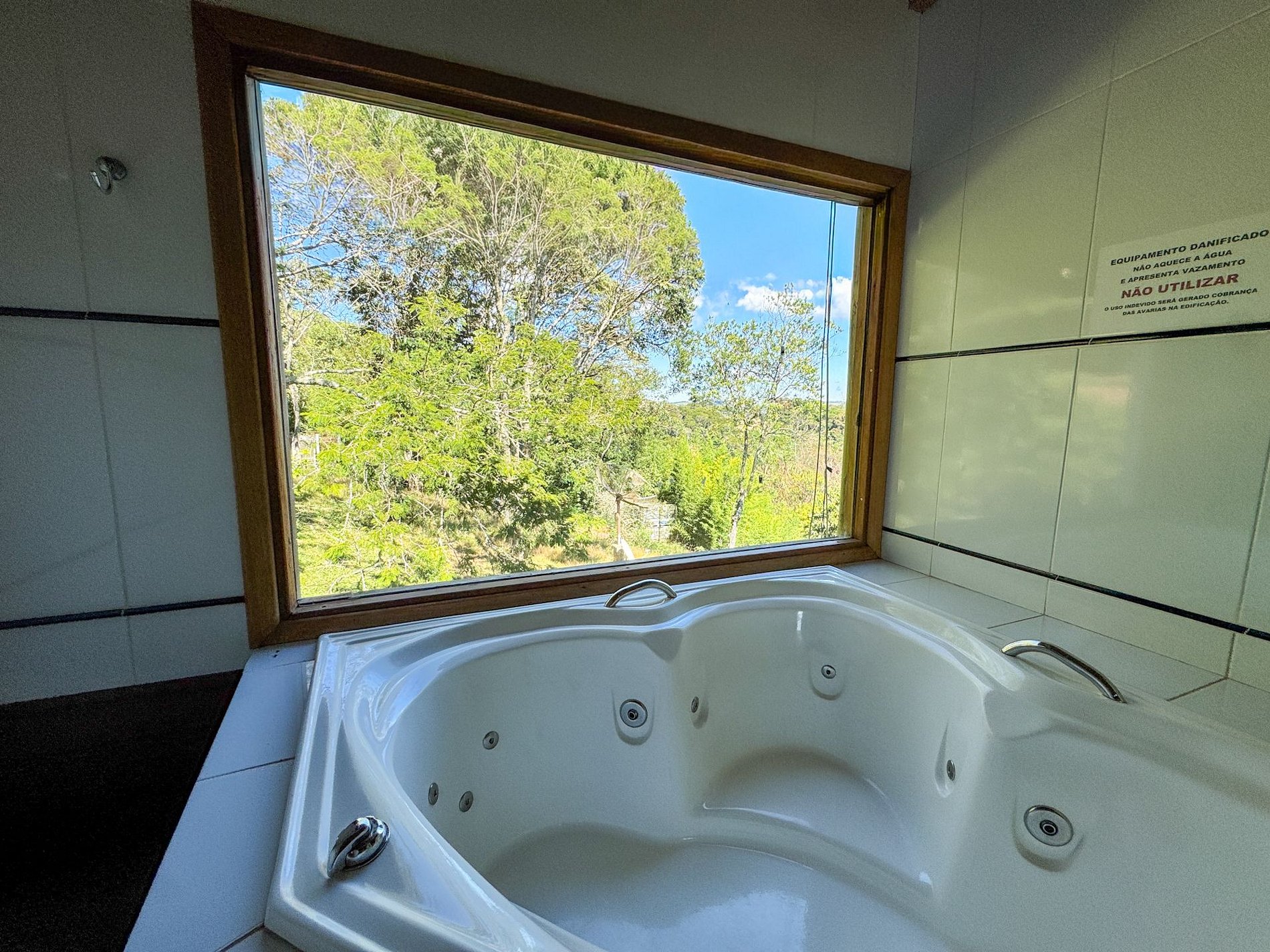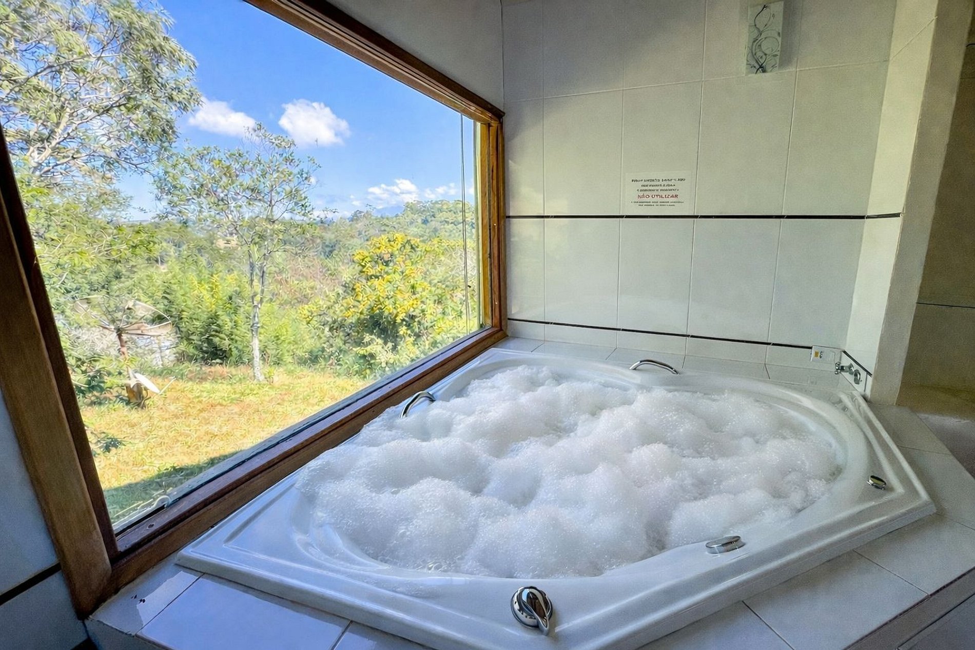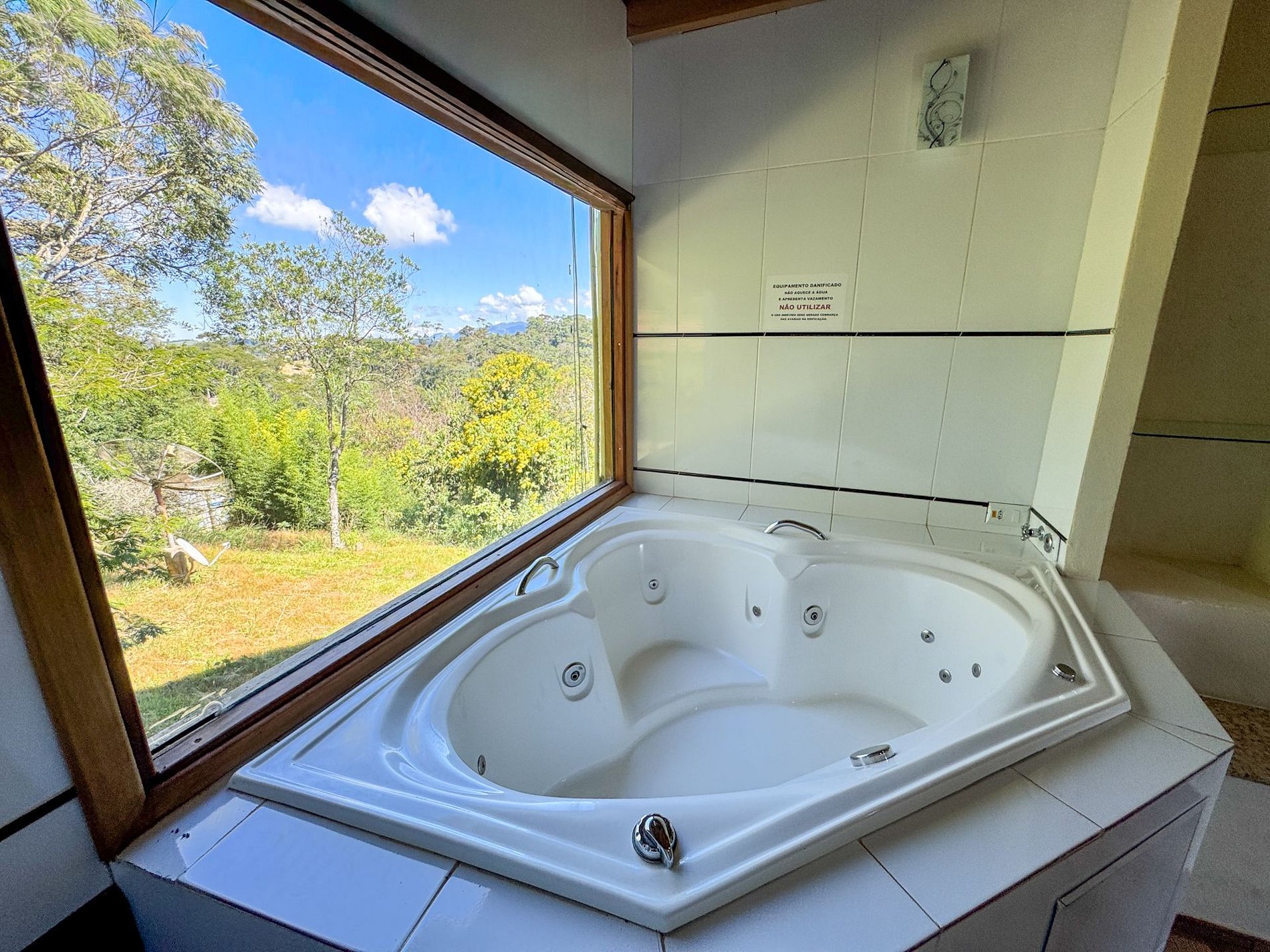 A área externa possui um quintal amplo, rodeado por muito verde. No interior da casa, há uma deliciosa banheira de hidromassagem com vista para a natureza, proporcionando uma experiência relaxante e especial.