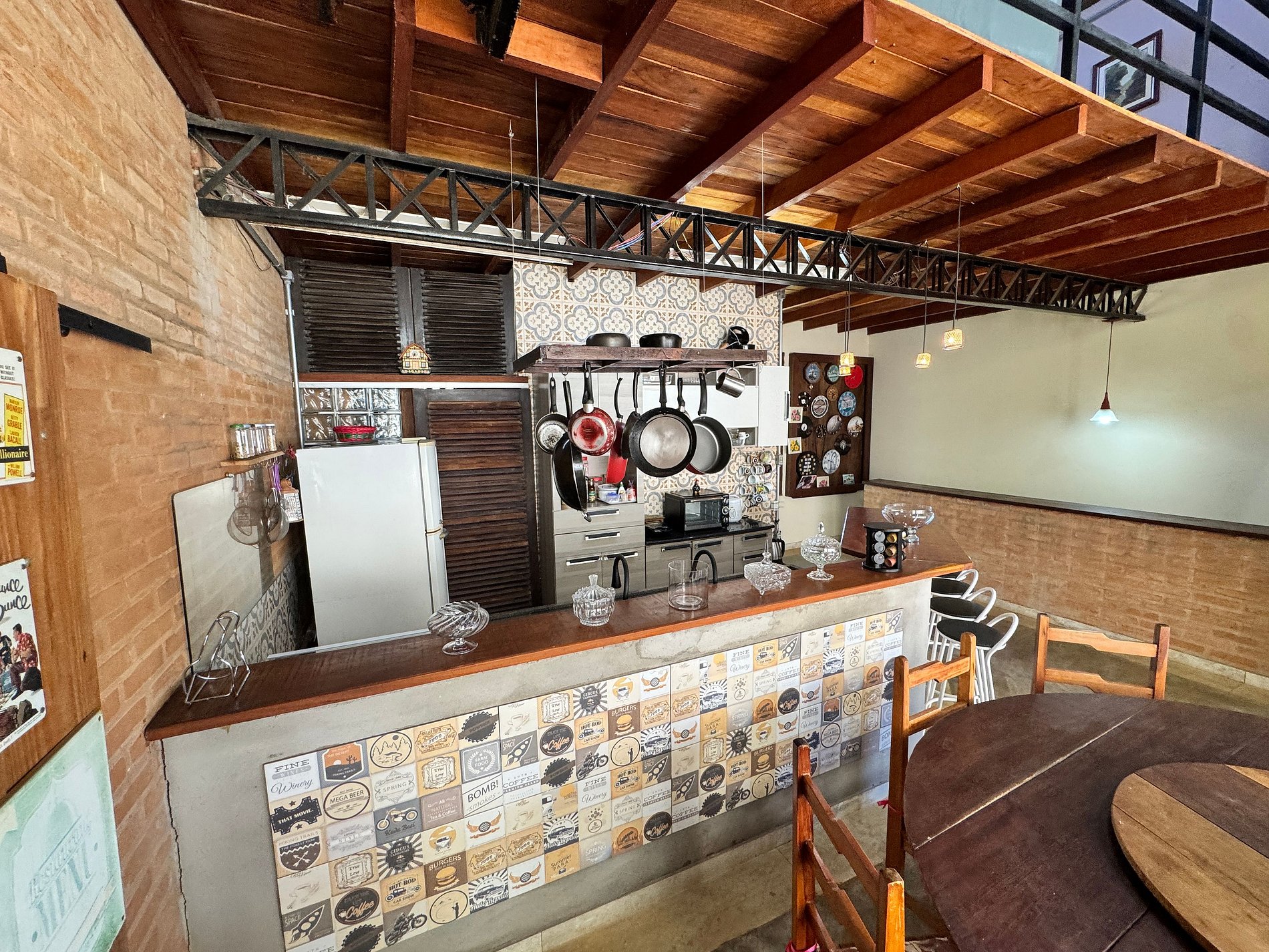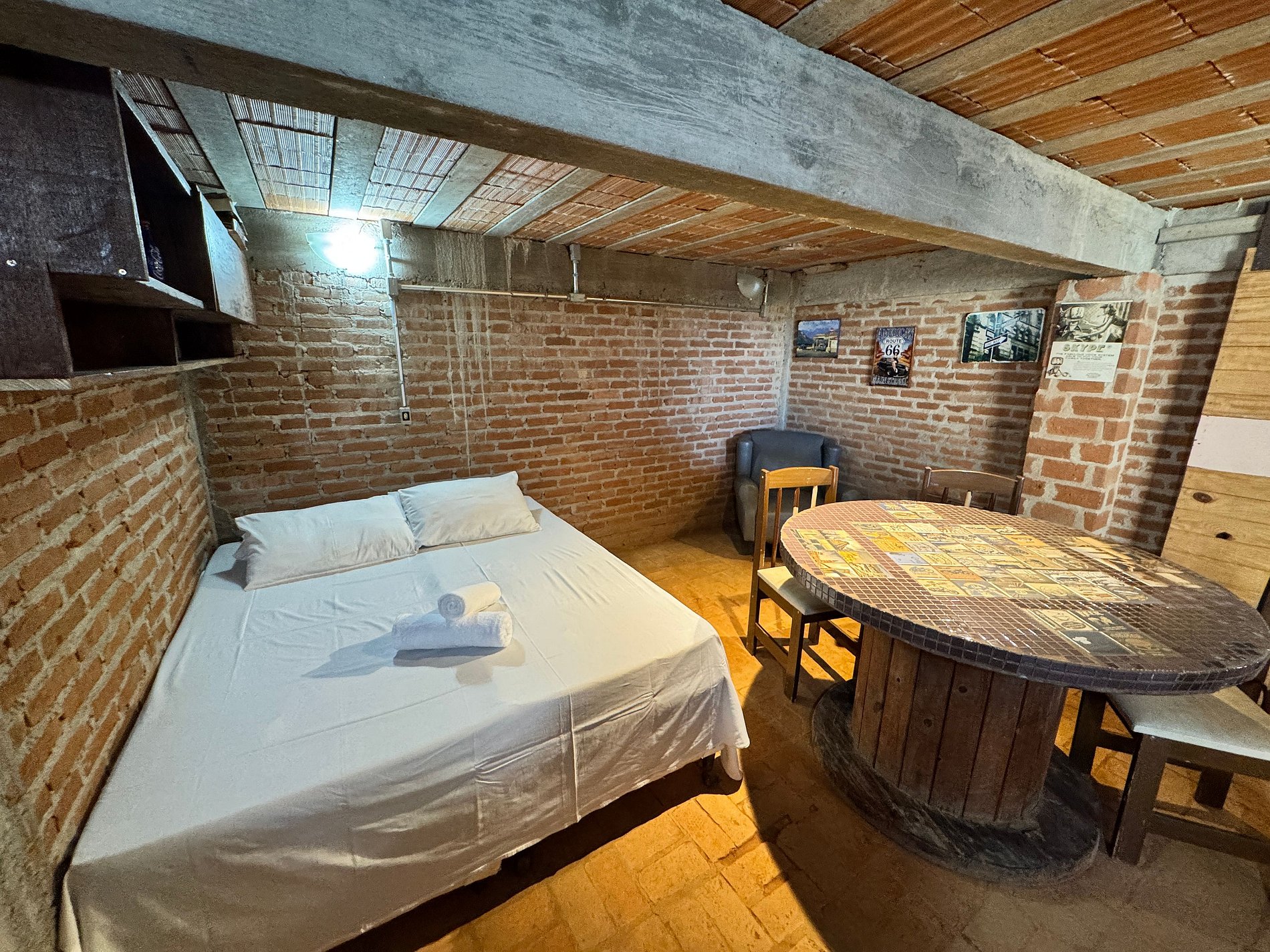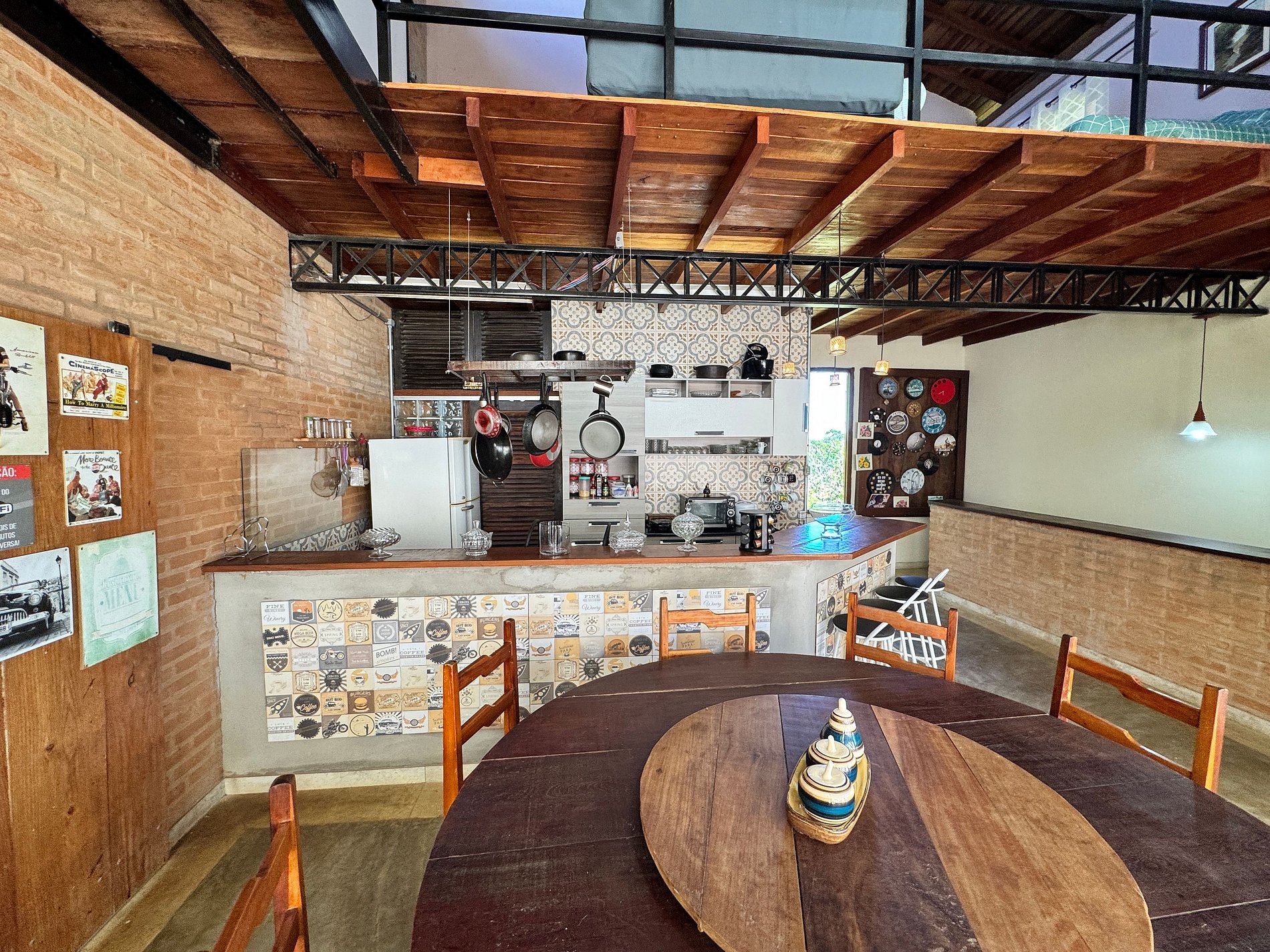 O espaço conta com 2 suítes confortáveis e 1 quarto integrado à sala, acomodando bem casais e famílias. Dispõe de uma sala de TV aconchegante e uma cozinha americana equipada, perfeita para momentos em conjunto.