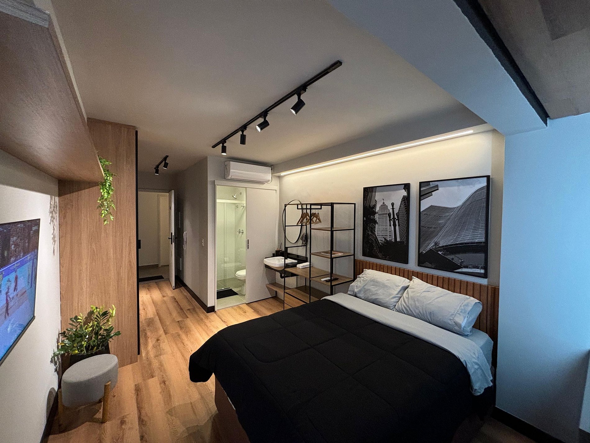 Flat moderno na melhor região de São Paulo, localizado na avenida 9 de julho no bairro Jardins contamos com um quarto, cozinha completa, televisão, um banheiro. Temos wifi e smart tv. Temos uma vista panorâmica incrível de toda a cidade e piscina com churrasqueira na cobertura.
