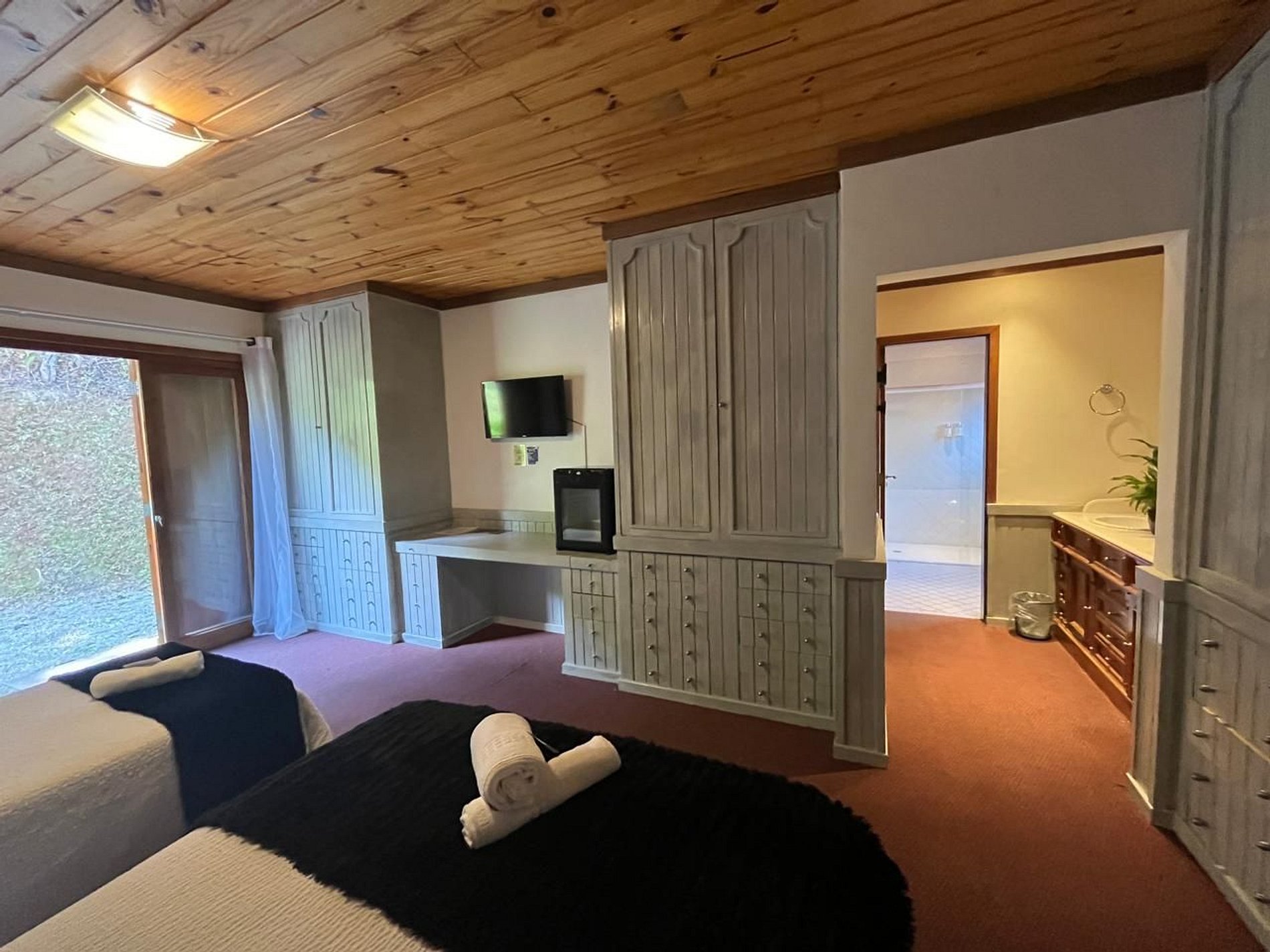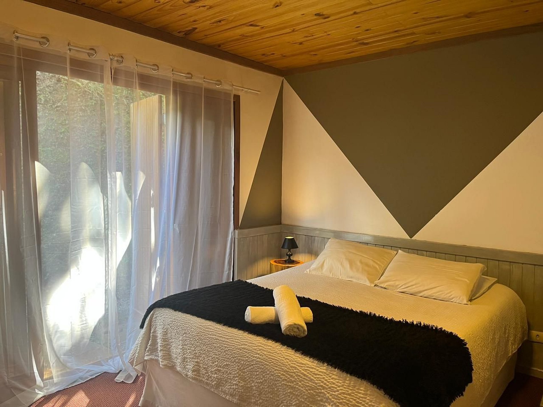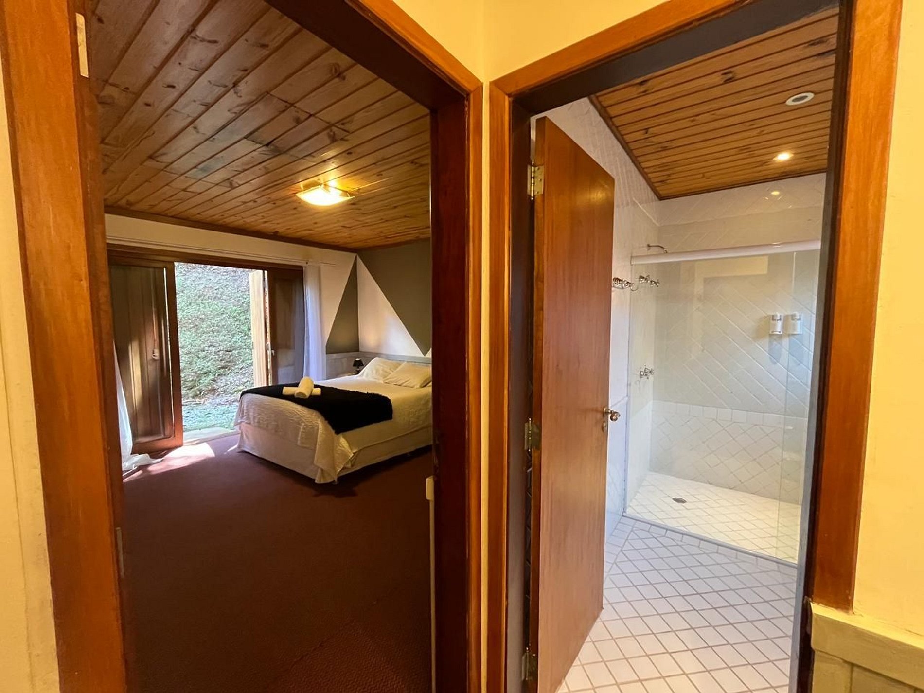 Este quarto é uma das acomodações que compõe a Pousada Capivari Lodge, no bairro Alto Capivari.