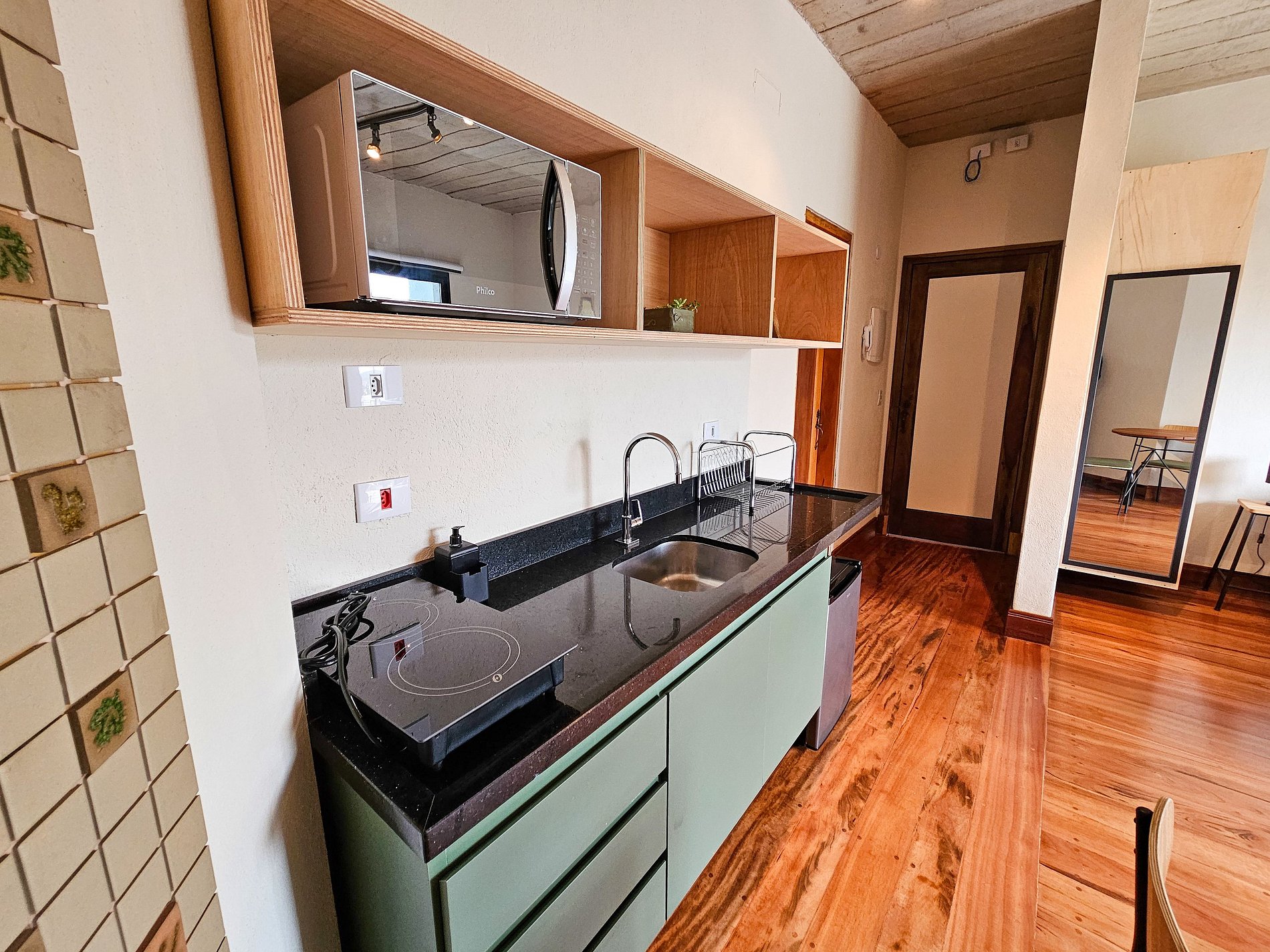 Nosso estúdio novo e moderno está localizado no coração do centro turístico do Capivari, composto por 1 suíte com um sofá cama para casais e famílias. Contamos com uma pequena sala de estar e cozinha equipada. Disponibilizamos roupa de cama e banho completo. Temos estacionamento cortesia no local. Disponibilizamos de internet wi-fi e possuímos TV smart. Contamos também com uma sala de estar de uso comum com lareira e jogos.