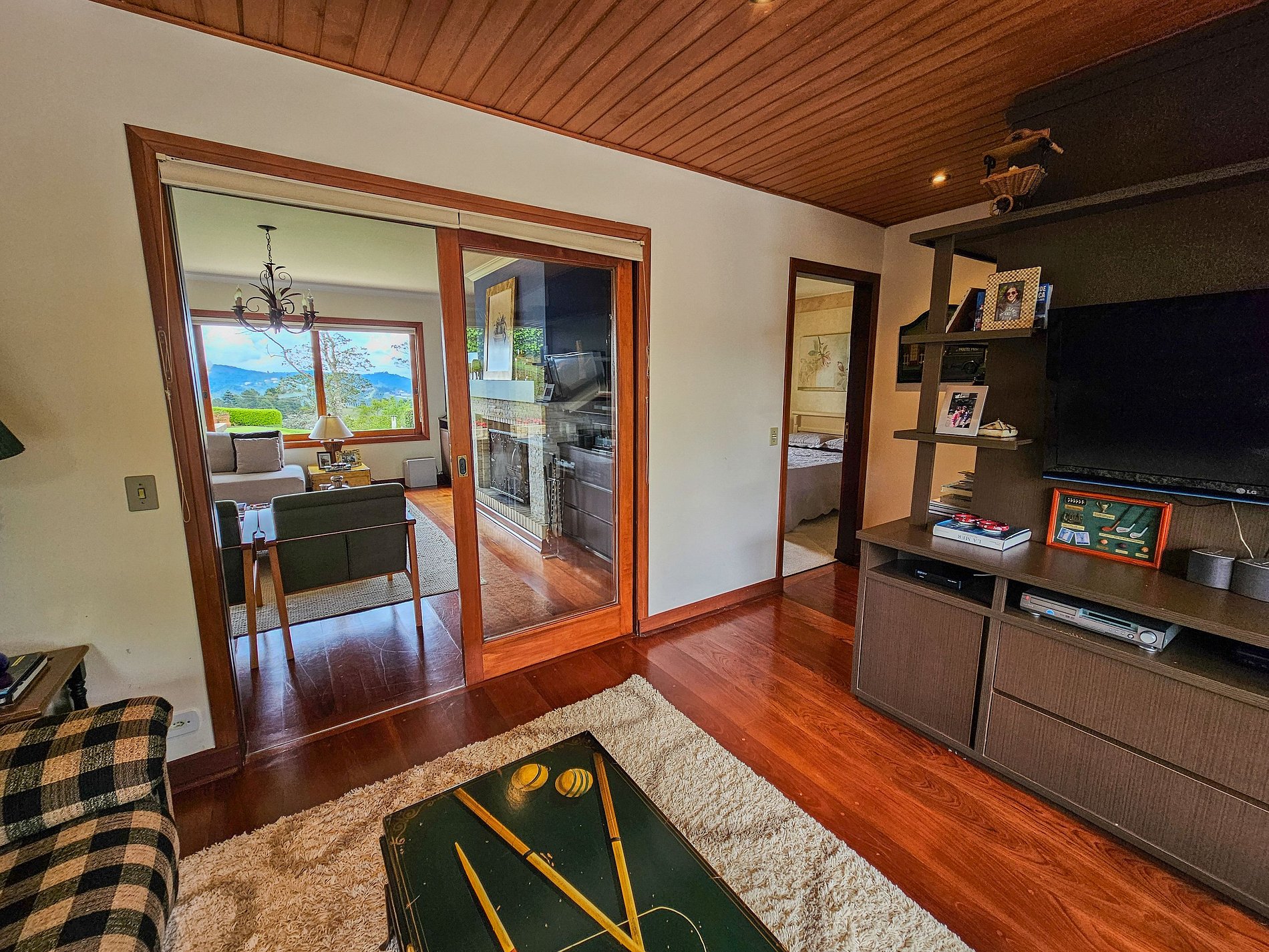 A casa está localizada a 2,4 km do centrinho de Capivari , no bairro Colinas de Capivari local seguro e tranquilo, composta por 5 suítes espaçosos para casais e famílias. Contamos com uma sala com lareira e sala de jantar. Belo jardim com piscina, Quadra de tenis e quadra de Beach Tenis, temos área para churrasco e uma horta orgânica com verduras e legumes, disponíveis para consumo no local. Internet Wi-Fi, TV smart. Disponibilizamos enxoval completo para os quartos e banheiros.