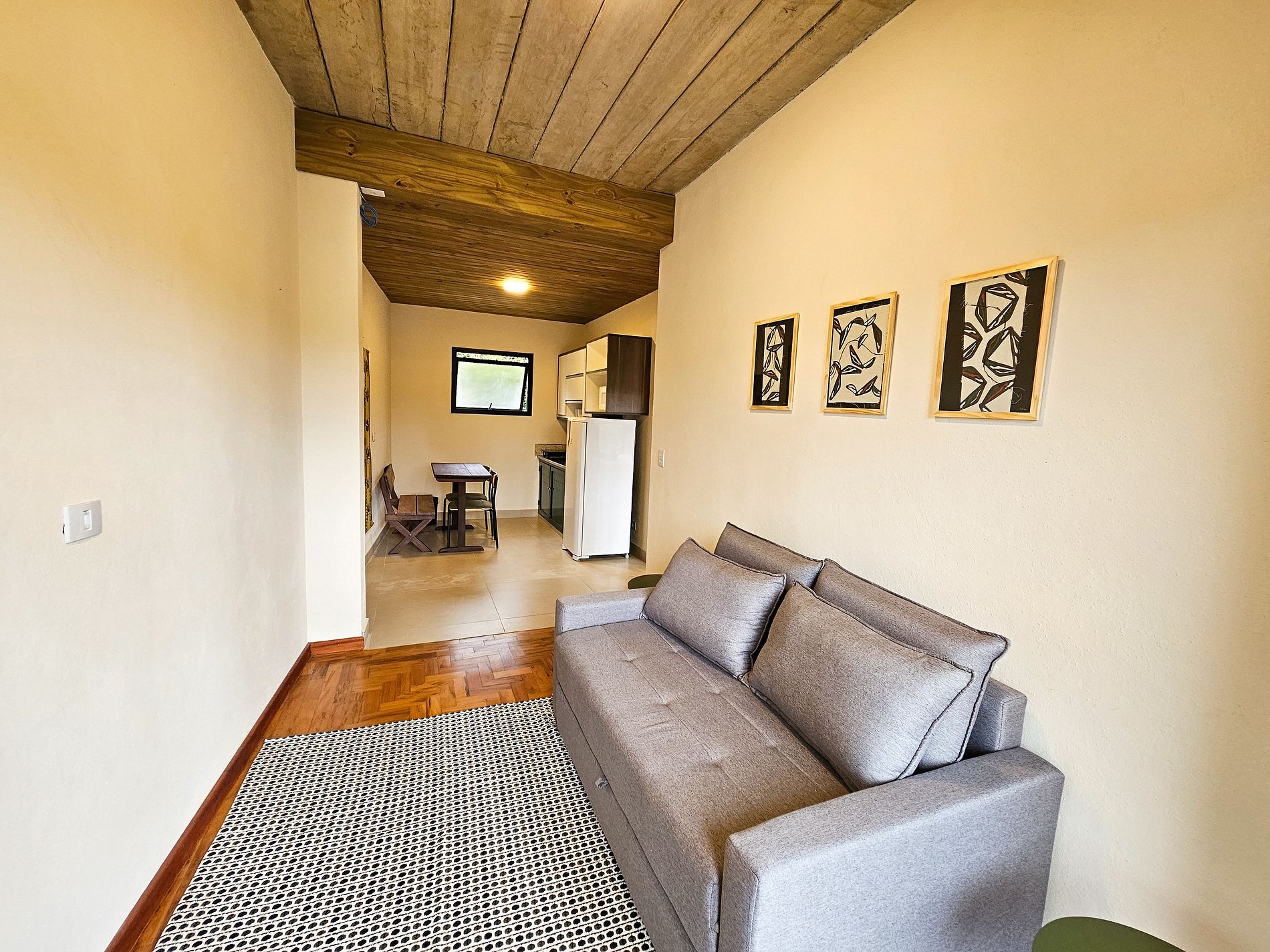 Nosso estúdio novo e moderno está localizado no coração do centro turístico do Capivari, composto por 1 suíte com um sofá cama para casais e famílias. Contamos com uma pequena sala de estar e cozinha equipada. Disponibilizamos roupa de cama e banho completo. Temos estacionamento cortesia no local. Disponibilizamos de internet wi-fi e possuímos TV smart. Contamos também com uma sala de estar de uso comum com lareira e jogos.