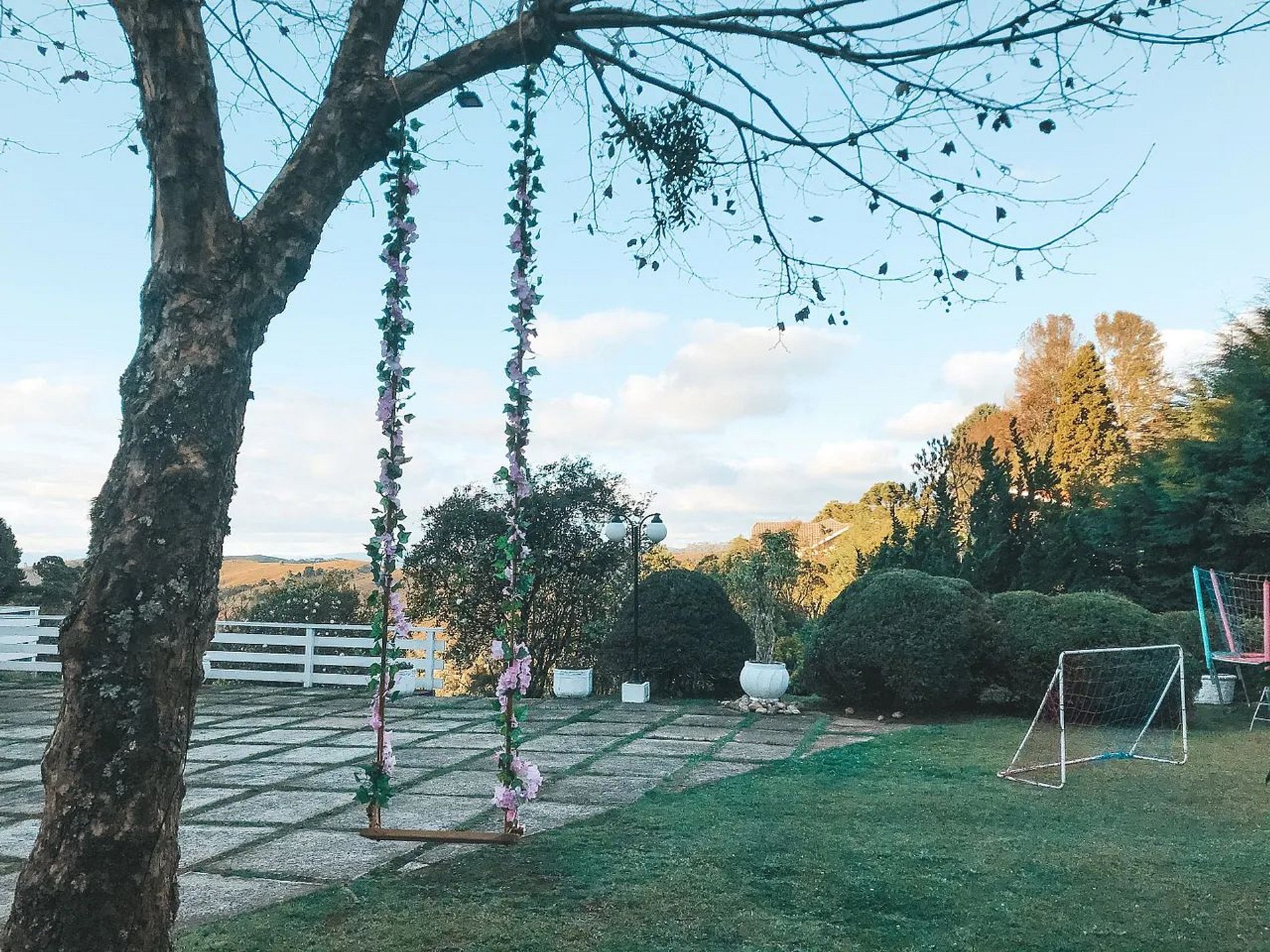 Pousada localizada no Alto do Capivari com as melhores vistas da região, com oito acomodações aconchegantes para casais ou famílias. A área externa tem um belo jardim e deck, com fogão de chão, com vista para as montanha onde se pode assistir os mais belos nascer e por do sol. Nosso jardim é compartilhado e tem um playground com brinquedos para crianças como pula-pula e golzinho de futebol. Temos área gourmet (sob reserva) com churrasqueira com utensílios para churrasco, como tábua, grelha e pegadores, fogão e forno a lenha.
