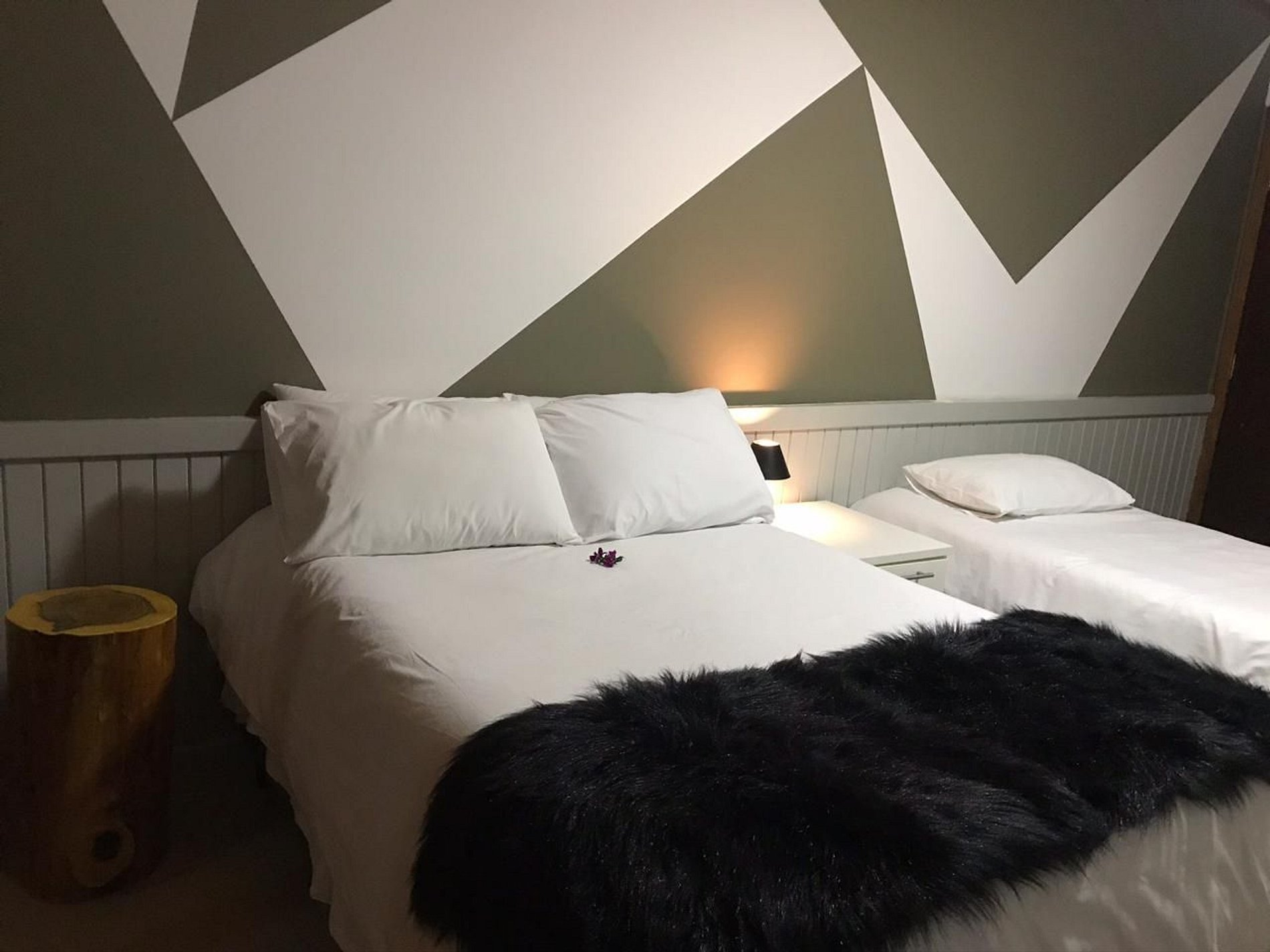 Este quarto é uma das acomodações que compõe o Complexo Capivari Lodge, no bairro Alto Capivari.